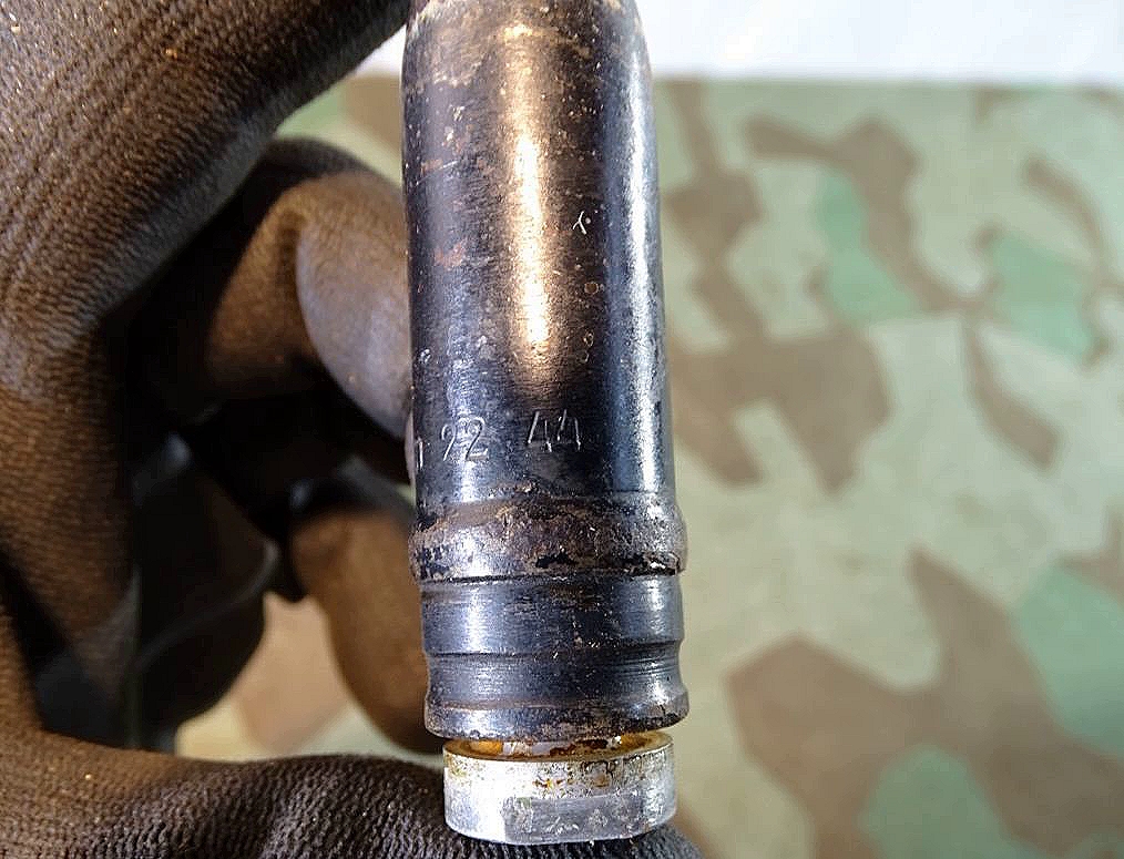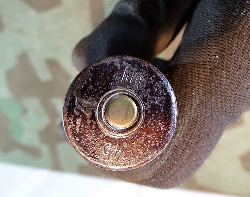 Schöner, originalbelassener Erhaltungszustand. Geschoss noch fast kpl. Originallackiert, Herstellercode am, ( Gustloff Werke Otto Eberhardt Patronenfabrik Hirtenberg Niederdonau, Fertigungsjahr 1944. Stahlhülse mit Originallack. S Sehr späte Stemplung gut lesbar htg 45!!. ( Für Polte Werk Duderstadt) Kugel drin damit man hören kann das sie leer ist. Komplett leer, ohne brennbare oder explosive Stoffe, Delaboriert, keine Funktion - reiner Dekorationsgegenstand. Frei verkäuflich ab 18 Jahren. Bei Bestellung bitte Altersnachweis mailen oder schicken ( Kopie / Foto vom gültigen Personalausweis)
