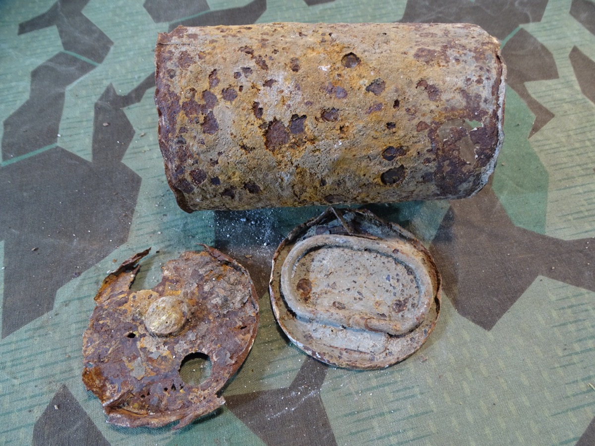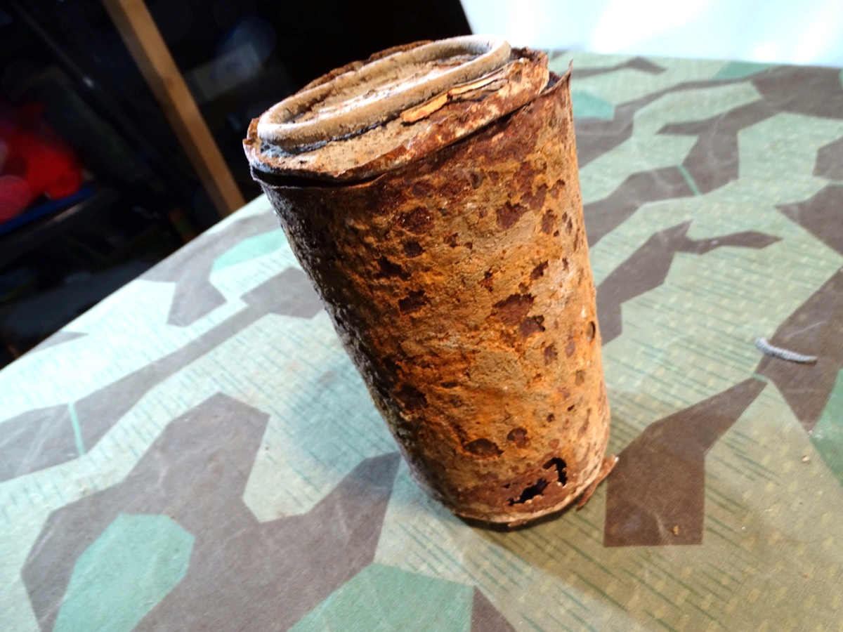 Produktinformationen "Deko Nebelkerze / Nebeltopf Wehrmacht, unrestauriert, seltenes Pionier Ausrüstungsteil"