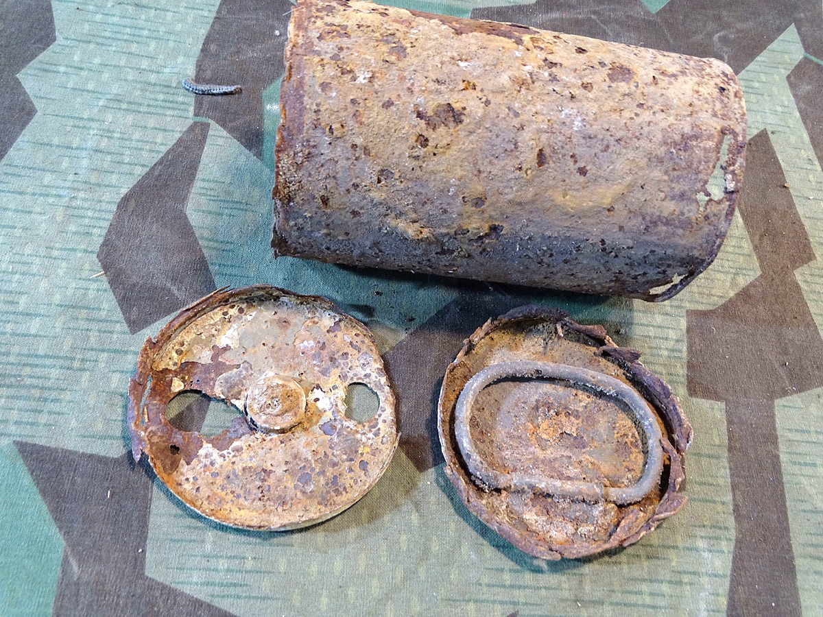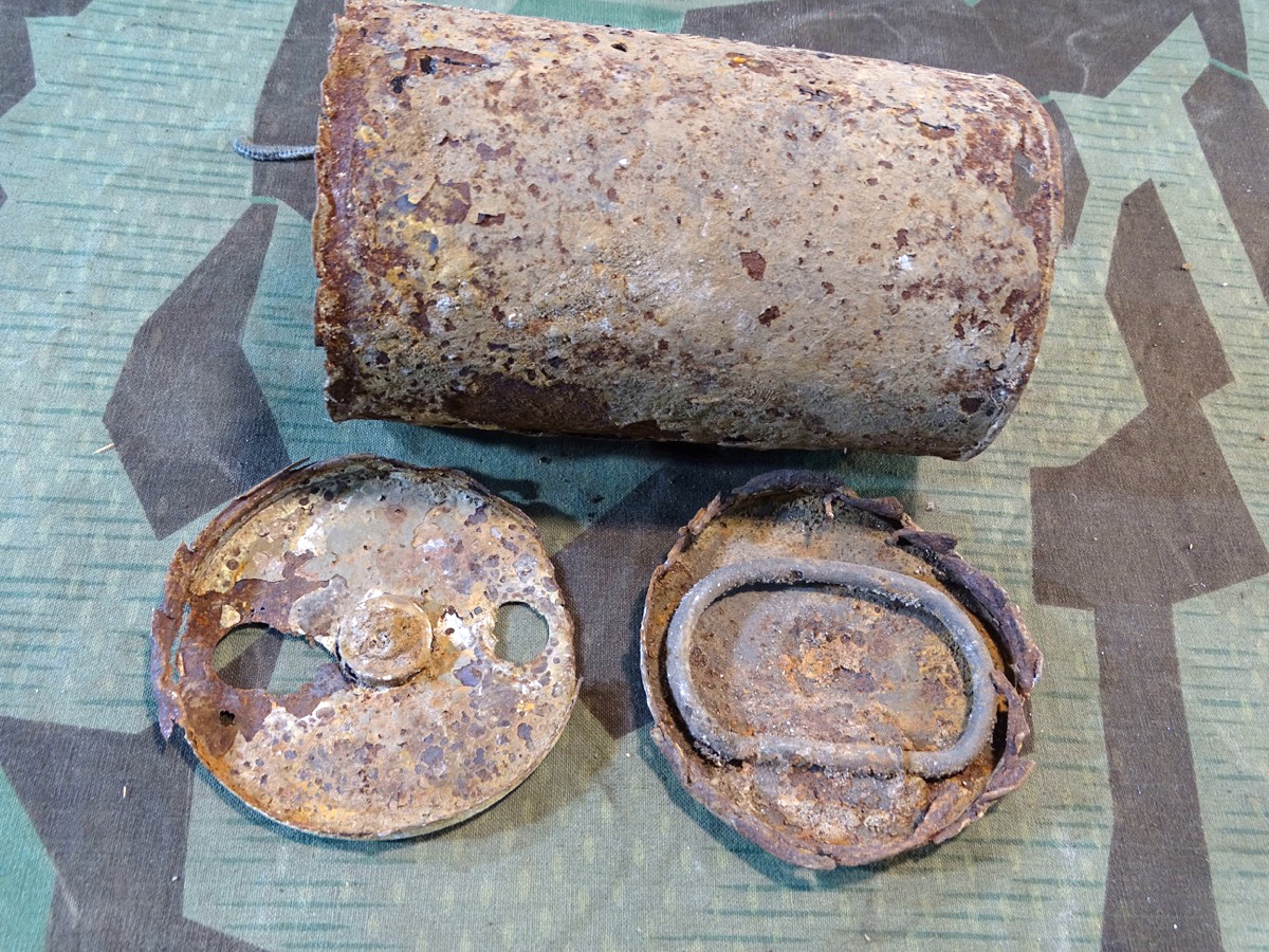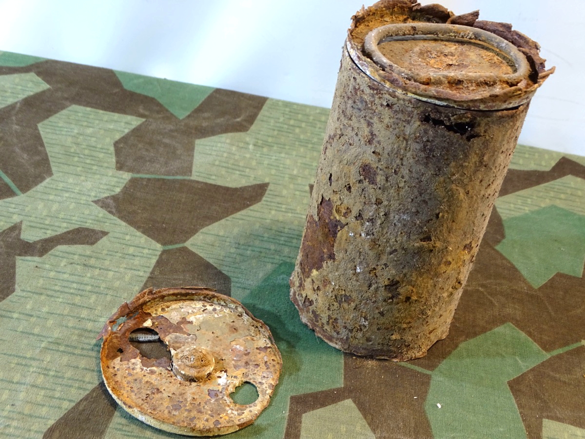 Produktinformationen "Deko Nebelkerze / Nebeltopf Wehrmacht, unrestauriert, seltenes Pionier Ausrüstungsteil"