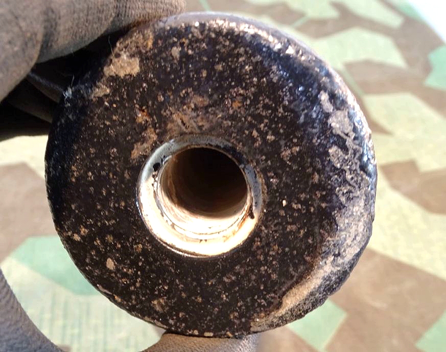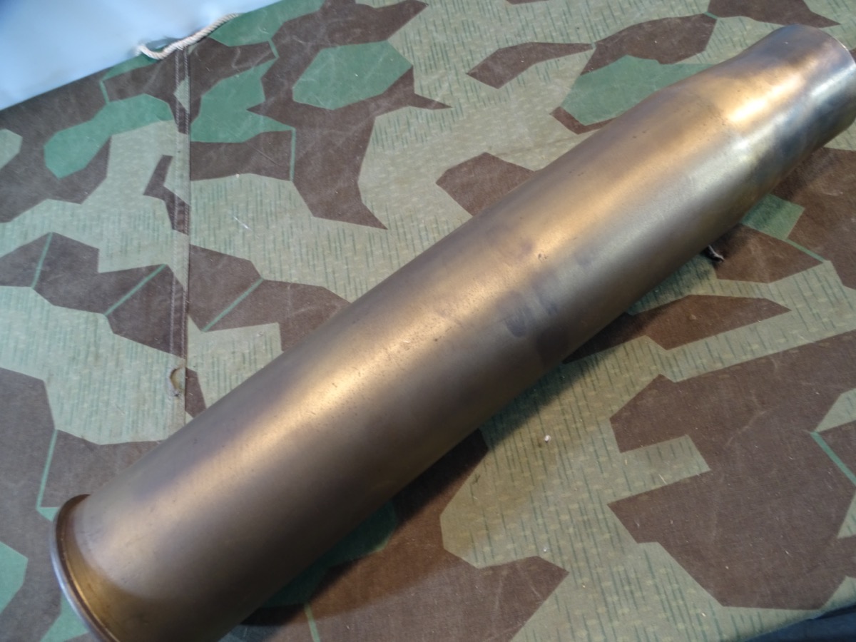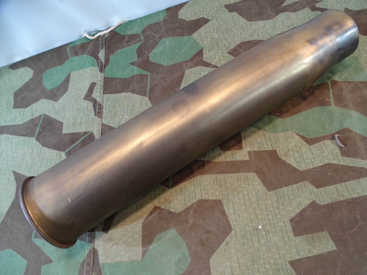 KEIN VERSAND INS AUSLAND MÖGLICH / NO POST TRANSFER TO OTHER COUNTRYS POSSIBLE Frei verkäuflich ab 18 Jahren. Sehr schön erhaltene, vermessingte Stahlhülse, hervorragender Zustand mit Bodenstempel, mit Zündschraube im Bodenteil. Mit Deko Sprenggranate, Oberfläche narbig, wurde vom Vorbesitzer gereinigt und neu lackiert. Anbei eine Leuchtspurhülse für den Geschossboden. Schön gestempelt mit 1941 erv. Lässt isch nicht einschrauben, Gewinde aber auch ungereinigt. War bei Ankauf dabei, gehört wahrscheinlich dazu, keine Garantie darauf. Gem. KWKG delaboriert! Bei Bestellung bitte Altersnachweis schicken oder mailen ( Kopie vom aktuellen, gültigen Personalausweis )