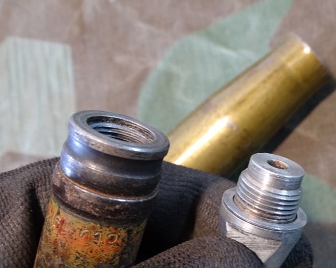 Hülse mit Herstellermarke eej 44 ( Märkisches Walzwerk GmbH Straussberg Bez. Potsdam. 1944) und WaA.
