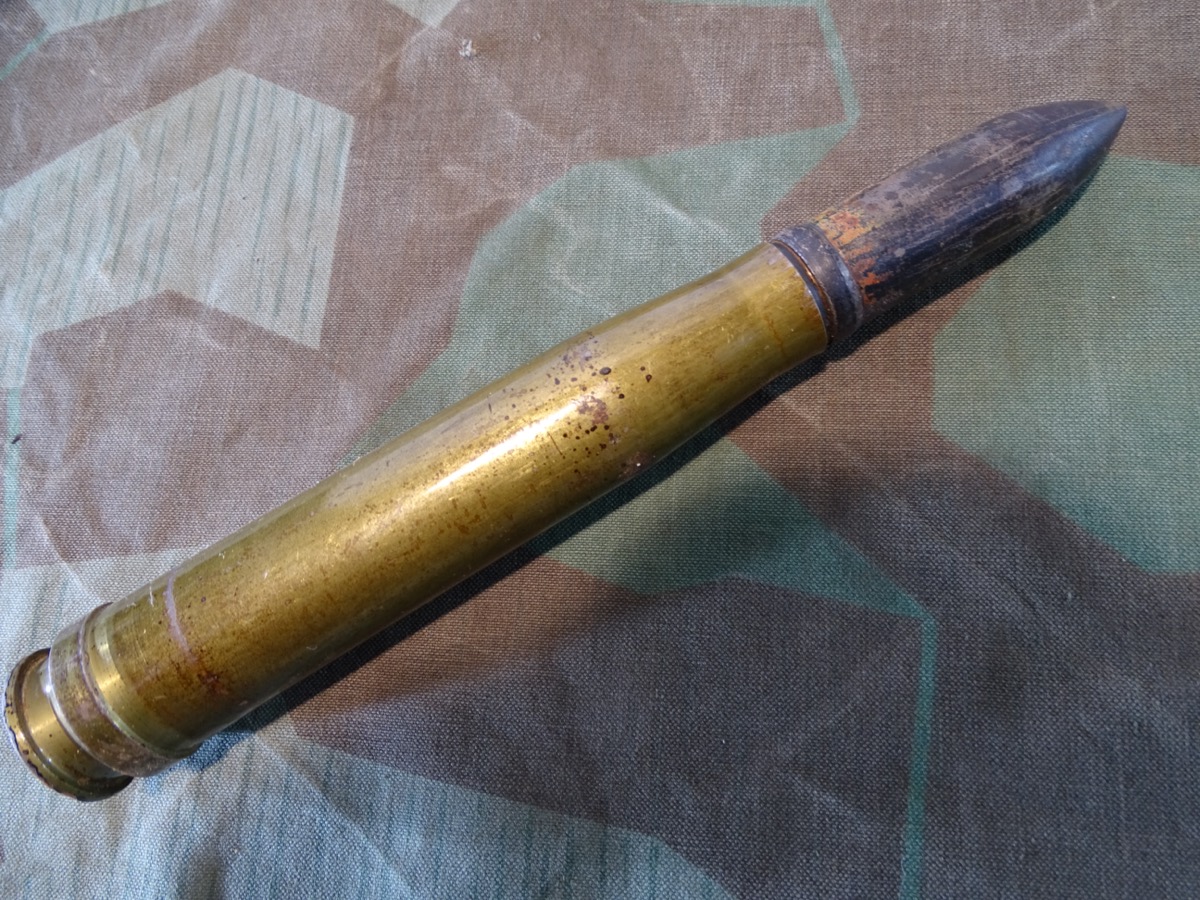 Deko-Patrone 2 cm Flak 38, Panzergeschoss, Originalfarbe, Stahlhülse