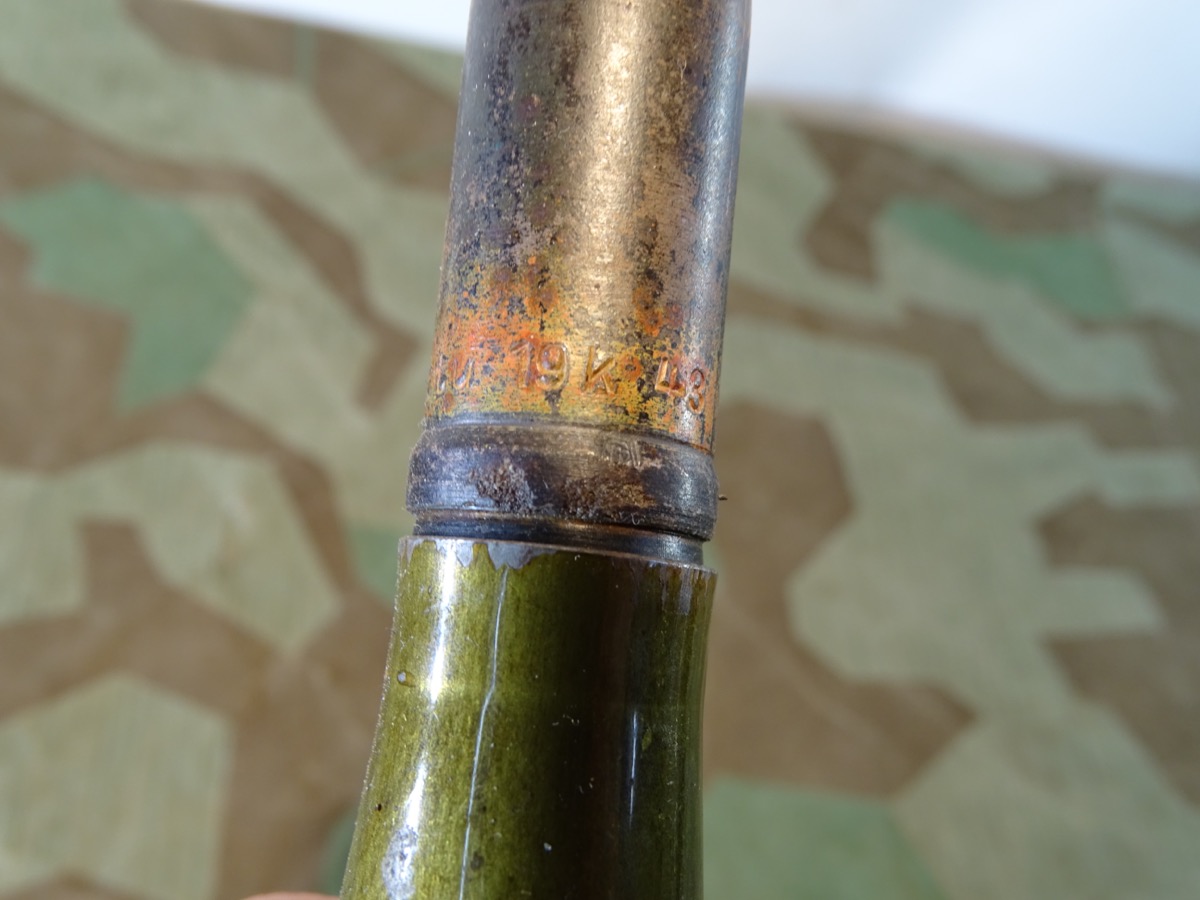 Geschoss mit Stemplung 19 K 43 ( 1943) , darunter auf Rand der eckige Luftwaffen WaA , aus dem Herstellercode lesen wir " ctu" , dies steht für die