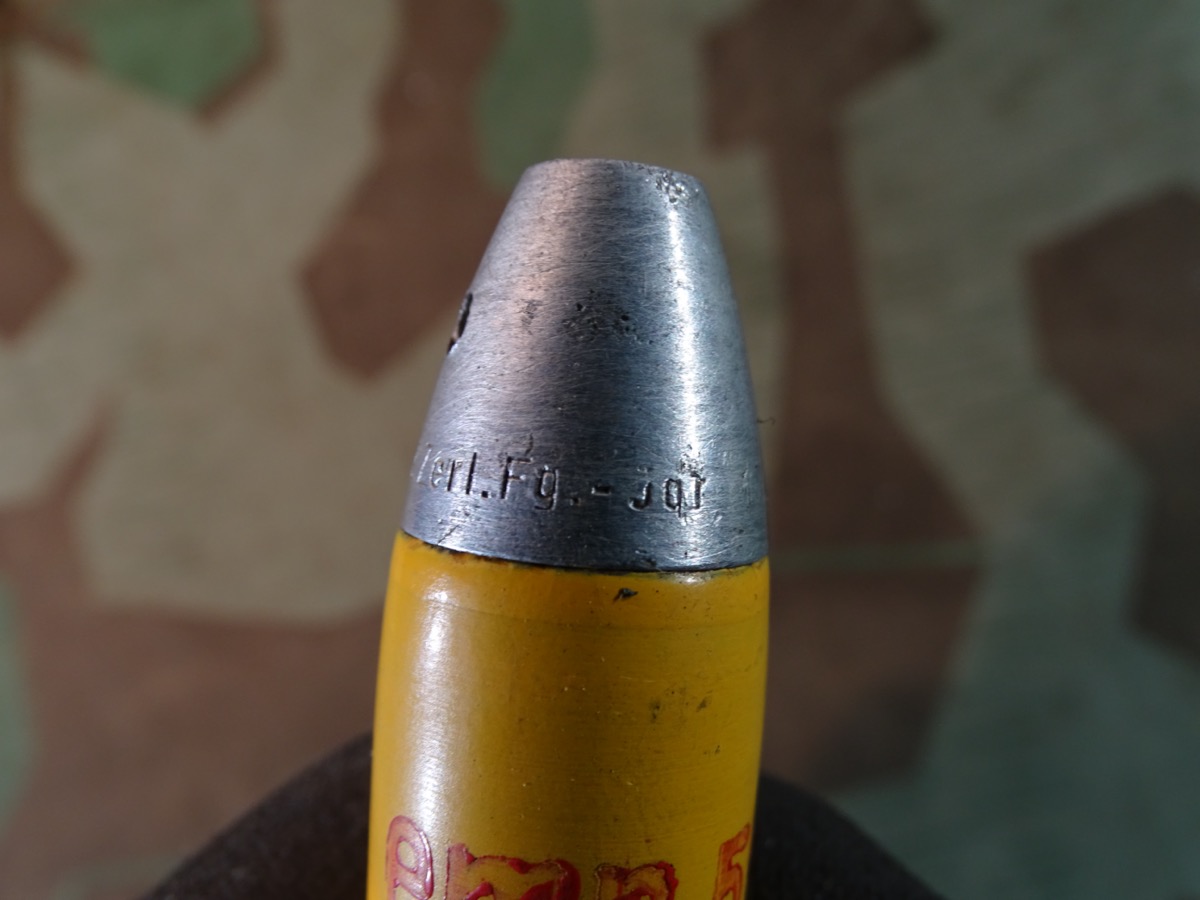 Deko-Patrone 2 cm Flak 38, Stahlhülse, Aluminium Zünder