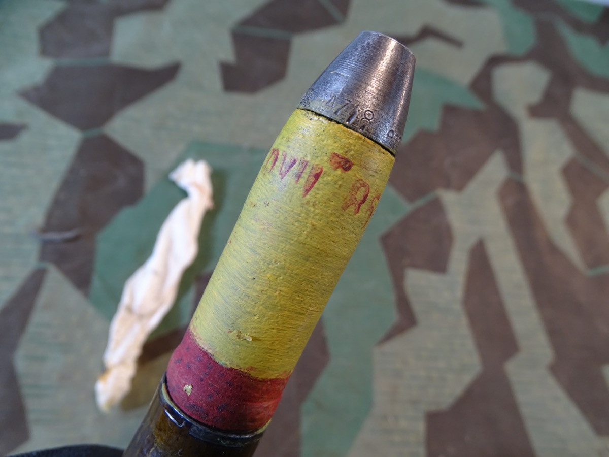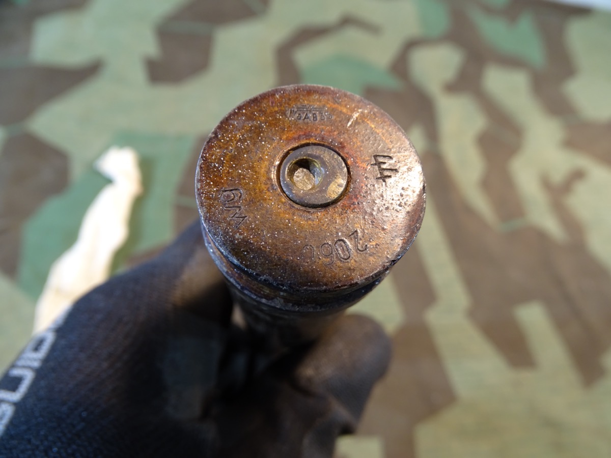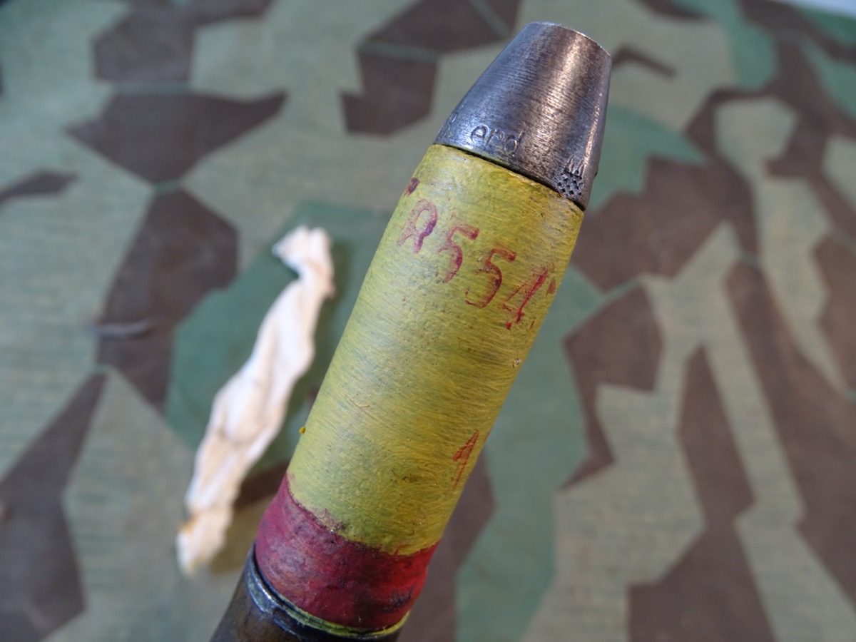 Hülse mit Herstellermarke wg 44 und WaA. Zünder mit Beschriftung: erd ( bayr. Reiszeugfanbrik AG Nürnberg) , AZ 48, 1944 WaA. Dabei ein selten erhaltenes Original Ladungssäckchen Komplett delaboriert, frei von zündfähigem Material. Bei Bestellung bitte Altersnachweis mailen oder schicken, nicht faxen (Kopie vom Personalausweis)