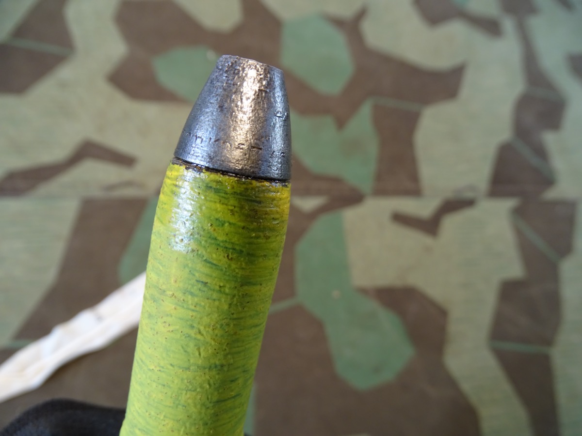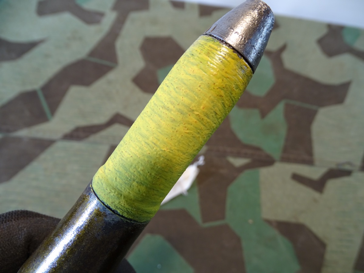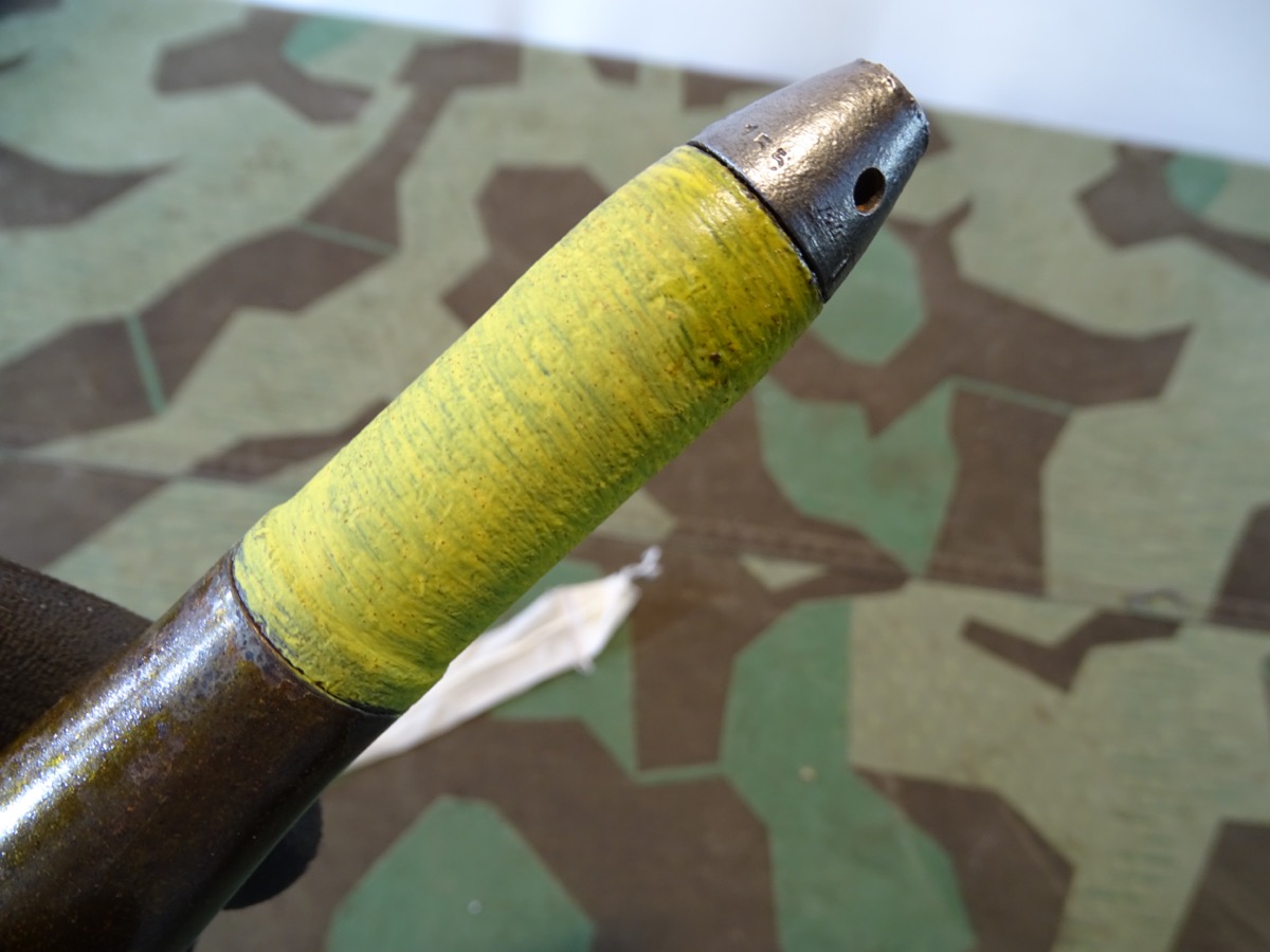 Wehrmacht, 2. Weltkrieg Flak. Gute Erhaltung, kompl. mit Deko-Sprenggranate, diese mit wahrscheinlich mal vor längerer Zeit authentisch erneuerter, gelber Lackierung. Gut gemacht.