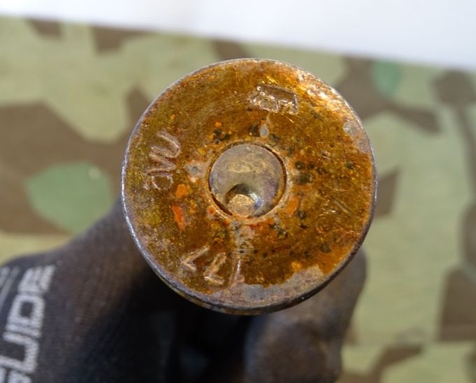 Hülse mit Herstellermarke avu 45 ( 1945!!) und WaA. Zünder mit Beschriftung z.B. WaA. Dabei ein selten erhaltenes Original Ladungssäckchen mit Aufdruck von Code und Oktober 1943 Komplett delaboriert, frei von zündfähigem Material. Bei Bestellung bitte Altersnachweis mailen oder schicken, nicht faxen (Kopie vom Personalausweis)