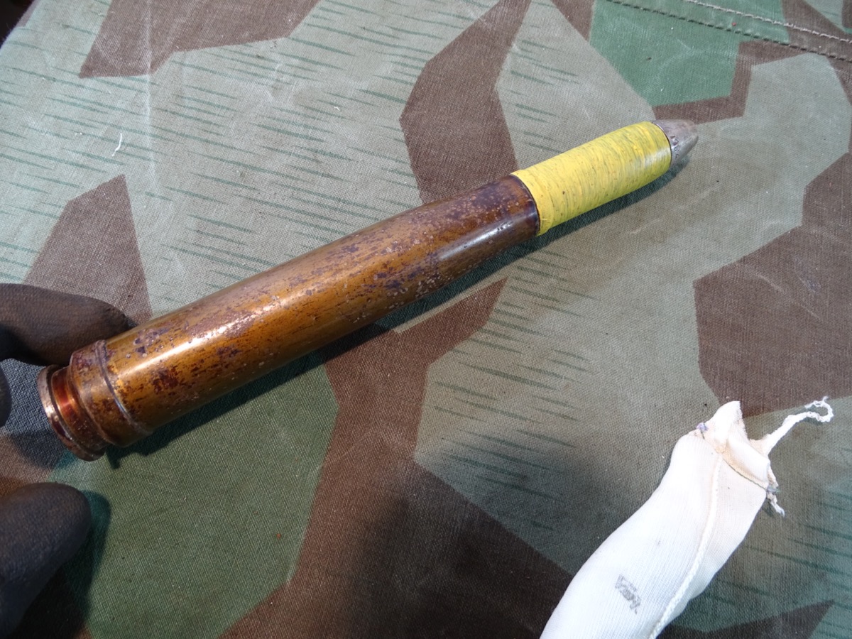 Deko-Patrone 2 cm Flak 38, Stahlhülse, Zünder, Ladungssäckchen