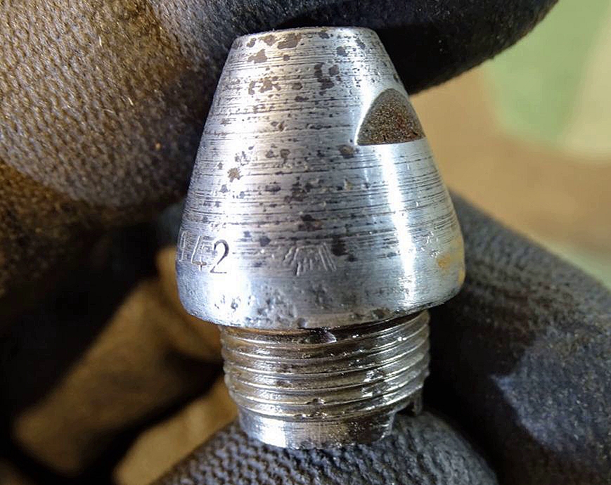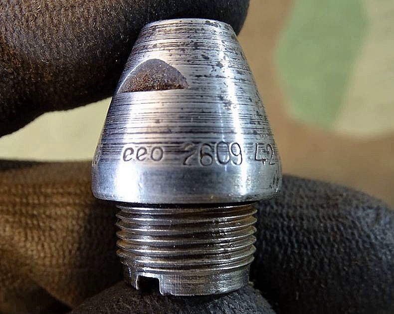 Geschichte : Luftwaffe, MG 151/20, Deko-Bordkanonenmunitions Eisen Zünder Mit deutschen Abnahmestempeln. Codierung, Adler und Jahreszahl. Schraubgewinde zur Verbindung mit Granate gut in Ordnung. Komplett delaboriert, ohne Zündkapsel.
