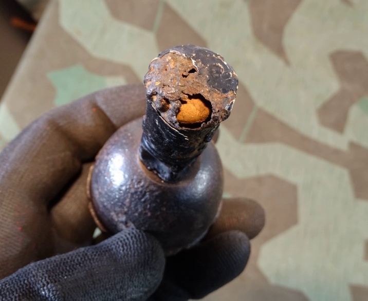 KEIN VERSAND INS AUSLAND !!! NO POST TRANSFER TO FOREIGN COUNTRYS !!! Mit Zünder M 1915. Zünder lässt sich in die Granate eindrehen aber selber nicht aufschrauben. Deaktiviertes Original. Stammt aus der Auflösung eines kleinen Museums in den Ardennen, daß nur Munition aus den regionalen Kämpfen ausstellte, wurde also wohl im Raum Belgien / Frankreich / Eifel / Ardennen eingesetzt. Frei verkäuflich ab 18 Jahren. Frei von jeglichen Explosionsstoffen und Zündmitteln, keine Funktion - reiner Dekorationsgegenstand. Bei Bestellung bitte Kopie eines gültigen Personalausweises schicken oder mailen, nicht faxen.