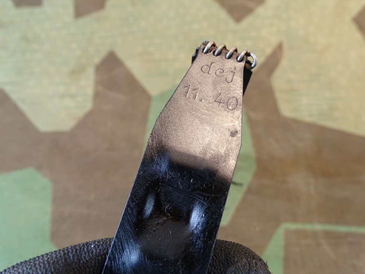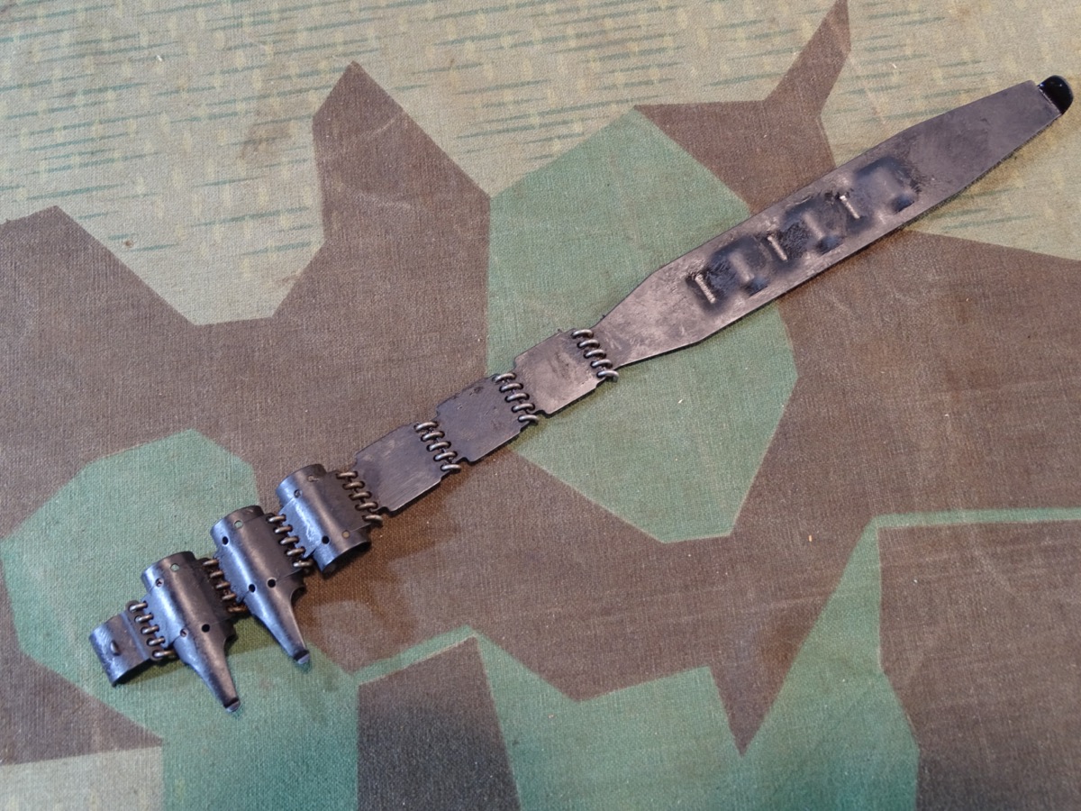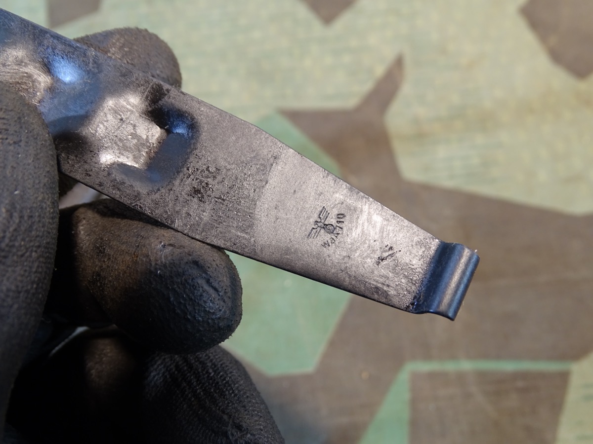 Wehrmachts Gurtketten Einführstück für das MG 34. Ab 1942 auch genutzt im MG 42. Herstellercodierung der Firma " dej" Gustav Schubeis, Schwelmer Stahl- & Eisengießerei, Schwelm Westf., eingestempeltes Produktionsdatum 11.1940, mit schönem grossen, detailliertem WaA Adler mit Nr. 710. Kein Versand außerhalb Europas. NO SHIPPING TO FOREIGN COUNTRYS outside Europe !! Bei Bestellung bitte Altersnachweis mailen oder schicken ( Kopie vom gültigen Personalausweis).