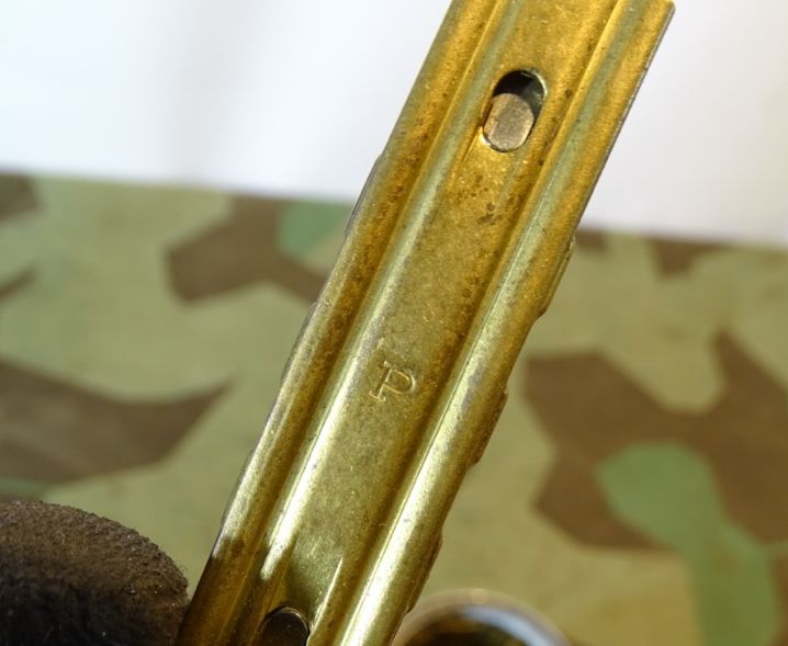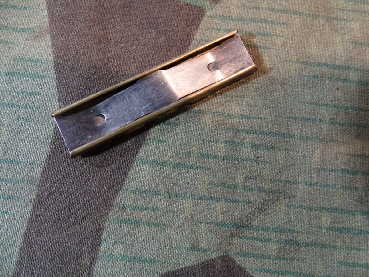 Produktinformationen "Früher Wehrmachts Ladestreifen für K 98 in Messing mit Herstellerkennung "P" (Polte)"