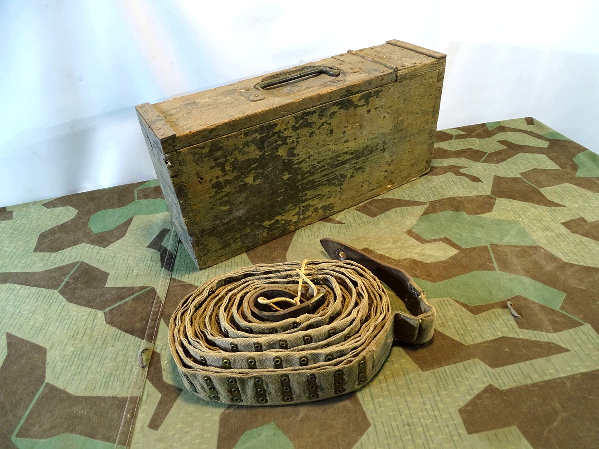 Holz Patronenkasten / Gurtkasten MG 08 mit Stoffgurt, 1. Weltkrieg