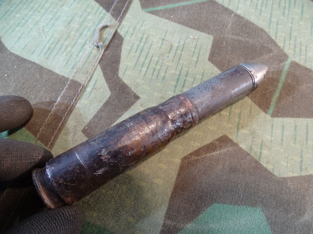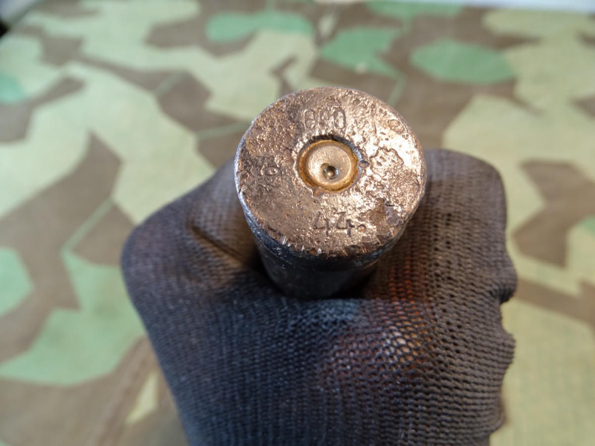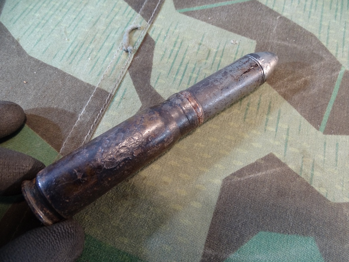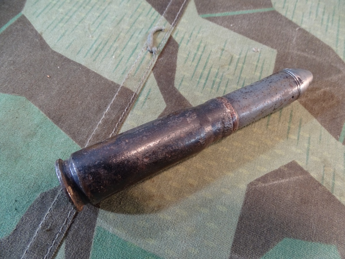 Kein Versand ins Ausland, NO SHIPPING TO FOREIGN COUNTRYS. Luftwaffe, MG 151/20, Deko-Bordkanonenmunition. Farbe des Geschosses noch zu ca. 95% original erhalten. Mit Stahl Zünder und Stahlhülse. Mit deutschen Abnahmestempeln. Schraubgewinde zur Verbindung mit Granate sind gut in Ordnung. Komplett delaboriert, ohne Zündkapsel. Geschichte: Bereits 1935 wurde bei der Firma Mauser das MG 151 entwickelt. Die für die Luftwaffe gebauten Waffen waren starr oder beweglich einbaubar. Die 15-mm-MG waren entweder mechanisch oder elektrisch bedienbar. Während des Krieges wurde das 15 mm MG 151 durch das MG 151/20 ersetzt, die sich vom Vorgänger vor allem durch den Austauschlauf und das gesteigerte Kaliber von 20 mm unterschieden. Außerdem konnte die Schussfolge auf bis zu 800 Schuss/min gesteigert werden. Die Mündungsgeschwindigkeit betrug nun 720 bzw. 800 m/s (AP bzw HE-Munition). Während der Endphase des Krieges wurden davon auch Erdkampfversionen mit Lafettierung und Abzugsmechanismus ausgeliefert. Eingebaut bei: messerschmitt Bf 109F-4 und allen Versionen der Bf-109G als Nabenkanone. Focke Wulf 190A-2 bis A-9 als synchronisierte Kanonen in den Flügelwurzeln, ab der A-6 auch als äußere Flügelwaffen. In der D-9 , D-11 , D-12 , D-13 und der Ta-152 wiederum nur noch in den Flügelwurzeln, sowie als Motorkanone (D-13) in Unterflügelbehältern, die bei verschiedenen Typen angebracht werden konnten. Frei von zündfähigem Material, kpl.delaboriert. Bei Bestellung bitte Altersnachweis senden oder mailen ( Kopie vom Personalausweis).-nicht faxen