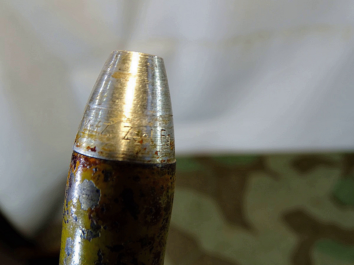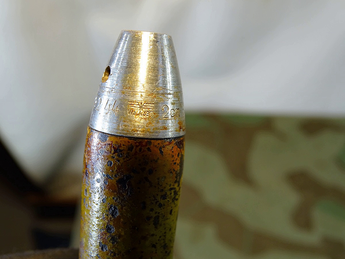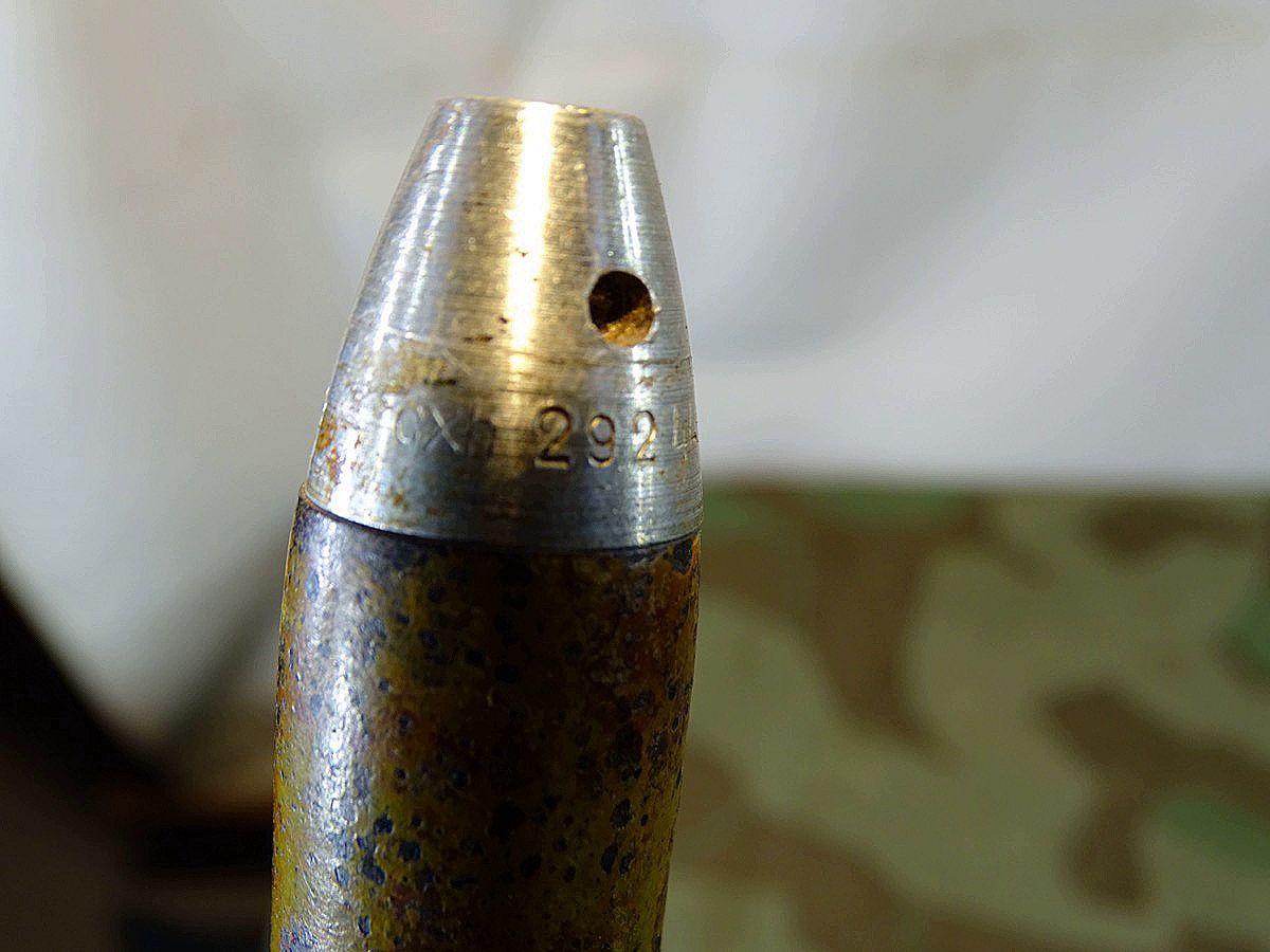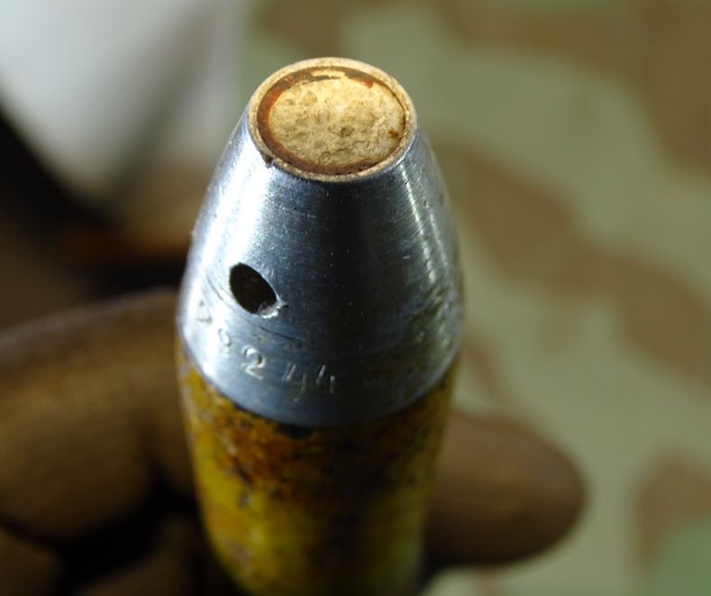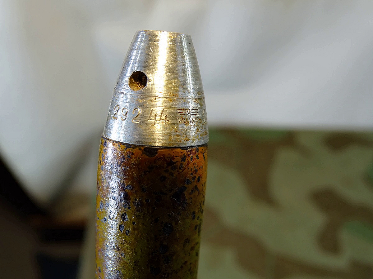 Produktinformationen "Wehrmacht Deko 2 cm Sprenggranate mit Stahlhülse Z 2-, Originallack, Aluzünder"