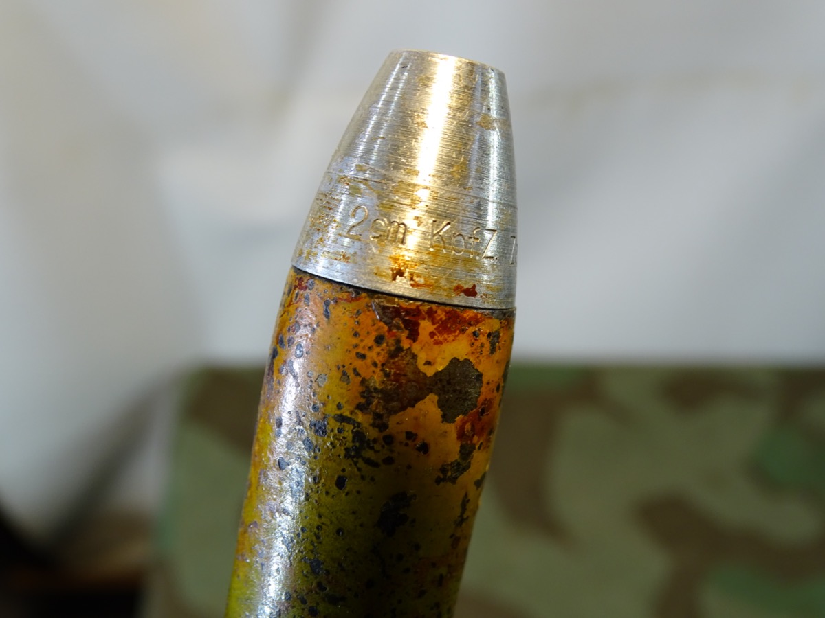 Wehrmacht Deko 2 cm Sprenggranate mit Stahlhülse Z 2-, Originallack, Aluzünder