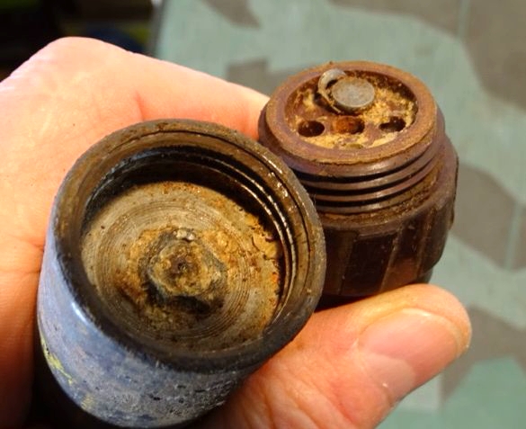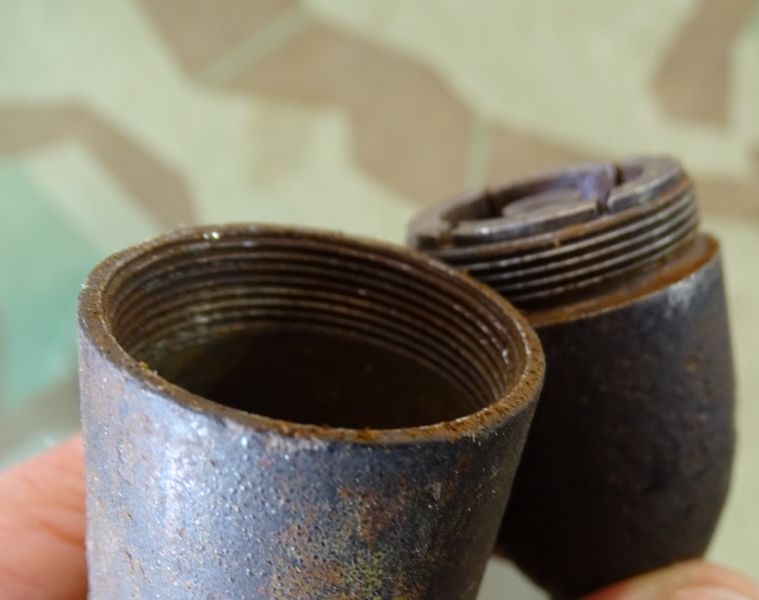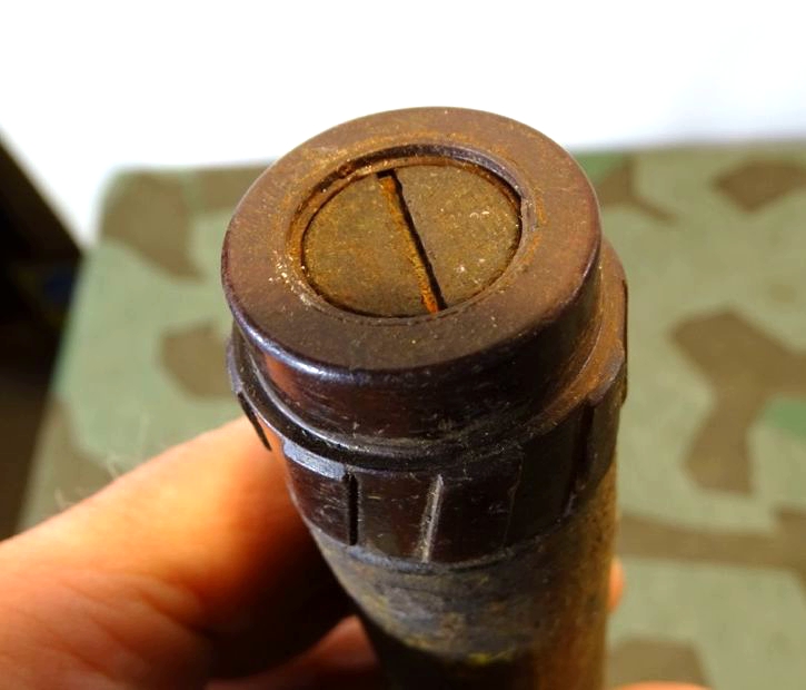 NO SHIPPING TO FOREIGN COUNTRYS, KEIN VERSAND INS AUSLAND. Etwas seltenere Version mit Abreißzünder , so daß man sie auch als Handgranate nutzen kann. Beide Gewinde aufschraubbar. Abreißdraht fehlt. Zustand siehe Fotos.