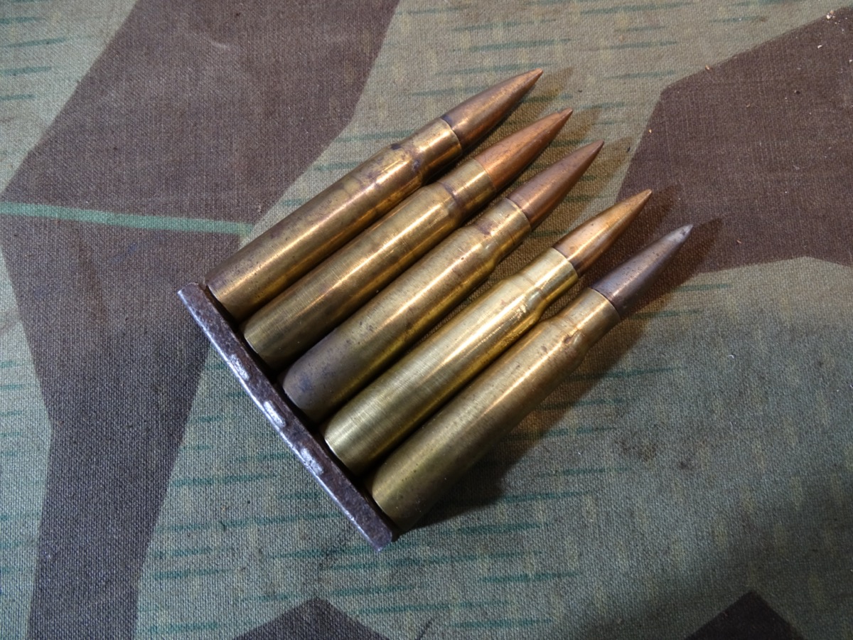Kein Versand außerhalb Deutschlands , NO Shipping to foreign countrys outside Germany possible. Die Patronen passend zum Ladestreifen mit späten Herstellern alle von 1943: avu 43, fer 43, etc. Federspannung des Ladestreifens ist vorhanden. Gesetzeskonform, frei erwerbbar ab 18 Jahre. Komplett delaboriert, frei von zündfähigem Material. Bei Bestellung bitte Altersnachweis senden oder mailen ( Kopie vom Personalausweis).