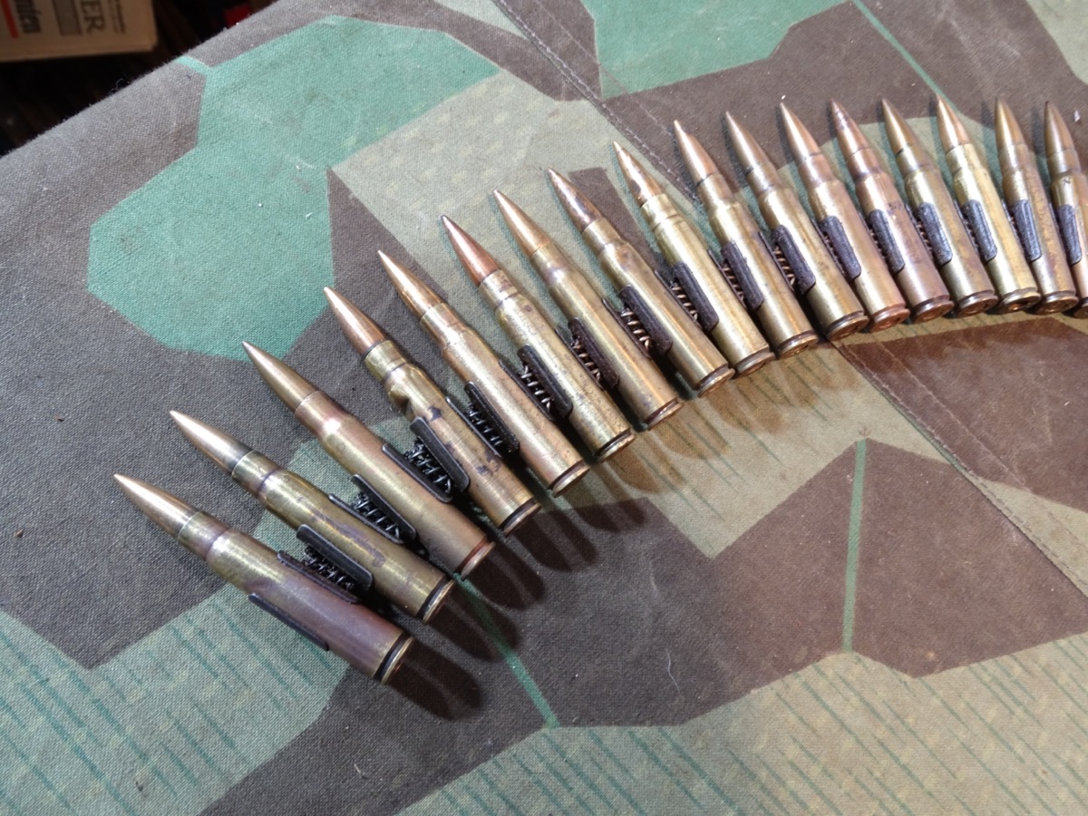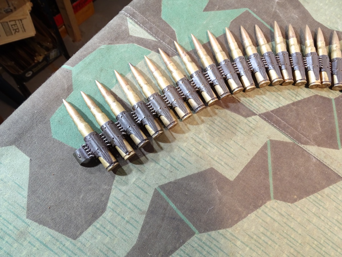 Produktinformationen "Wehrmachts Patronengurt / Gurtkette mit 50 Buntmetall Deko Patronen 8x57, gemischte Hersteller"