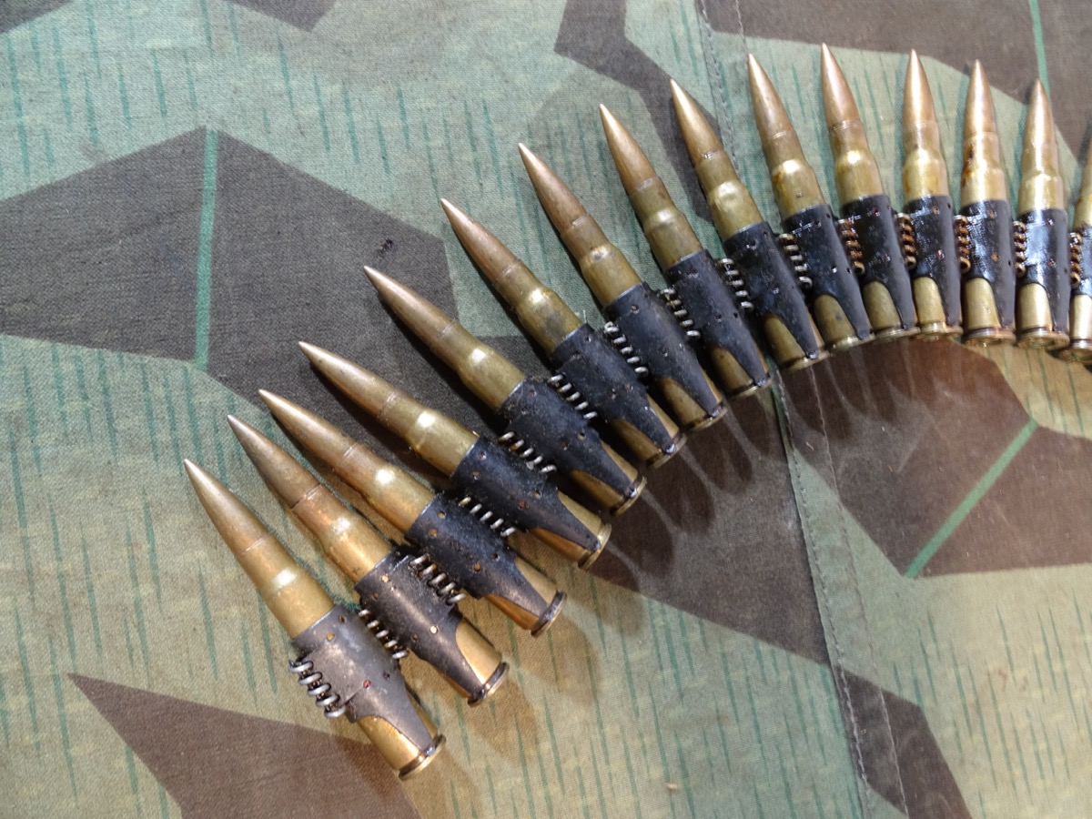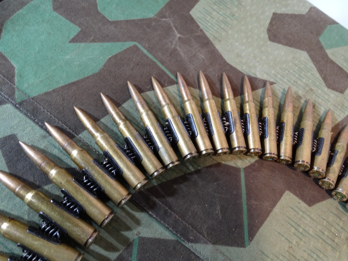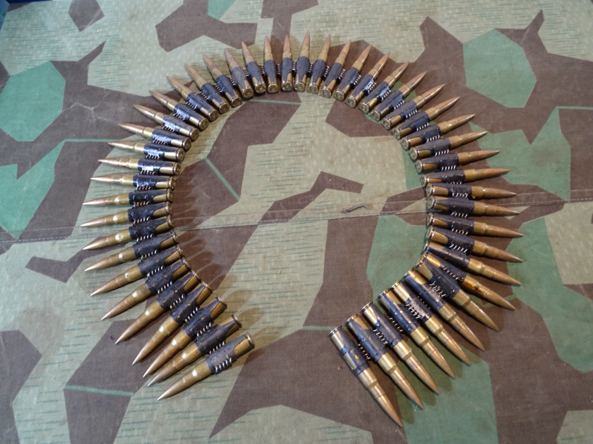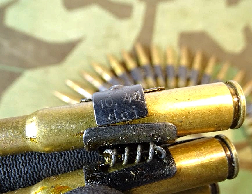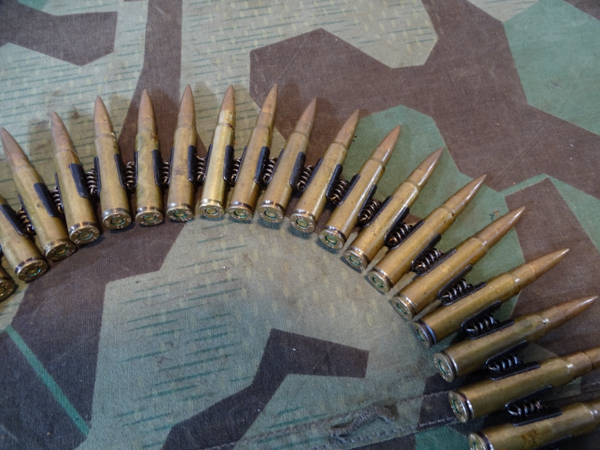 Produktinformationen "Wehrmachts Patronengurt / Gurtkette mit 50 Deko Patronen 8x57, gleicher Hst.,P69 1936, Top Zustand"