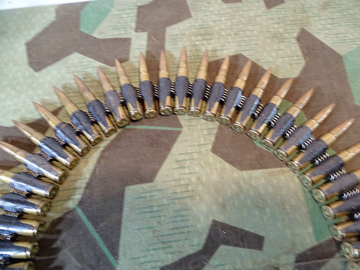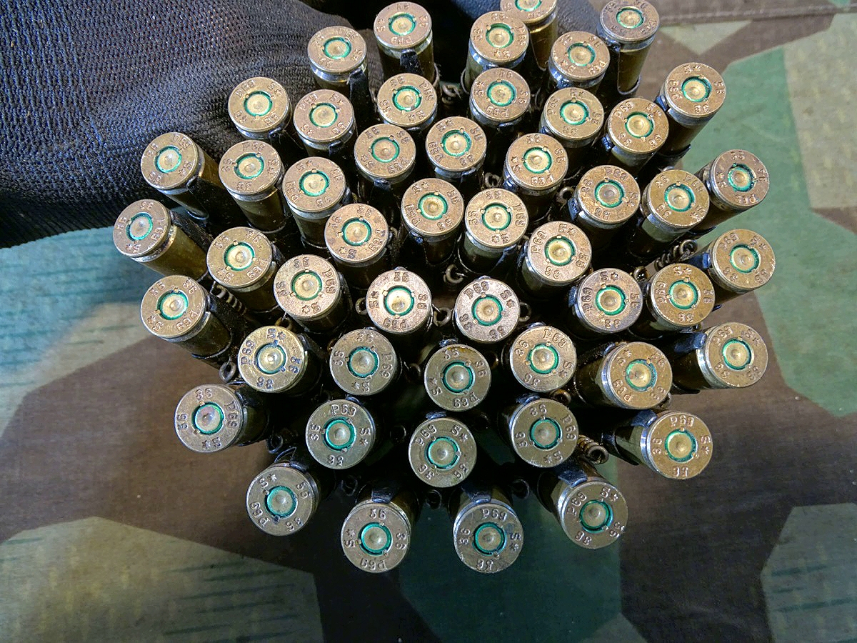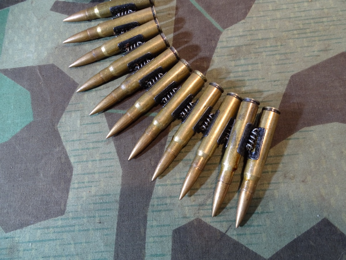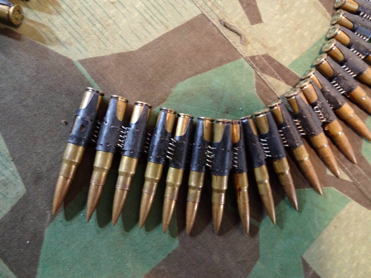 Produktinformationen "Wehrmachts Patronengurt / Gurtkette mit 50 Deko Patronen 8x57, gleicher Hst.,P69 1936, Top Zustand"