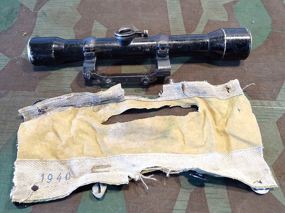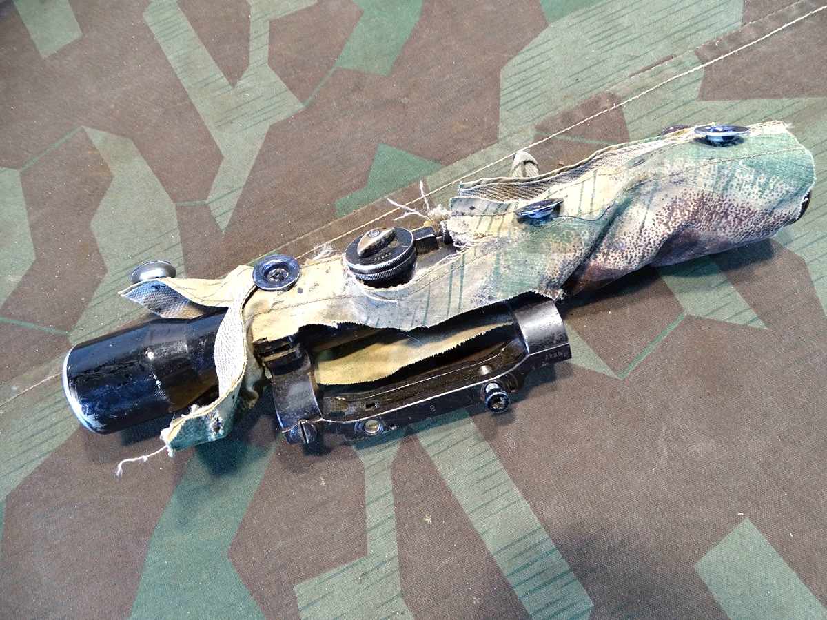 Zielfernrohr "Zielvier" ( frühe Nachkriegszeit) mit Tarnüberzug aus Sumpftarnmuster