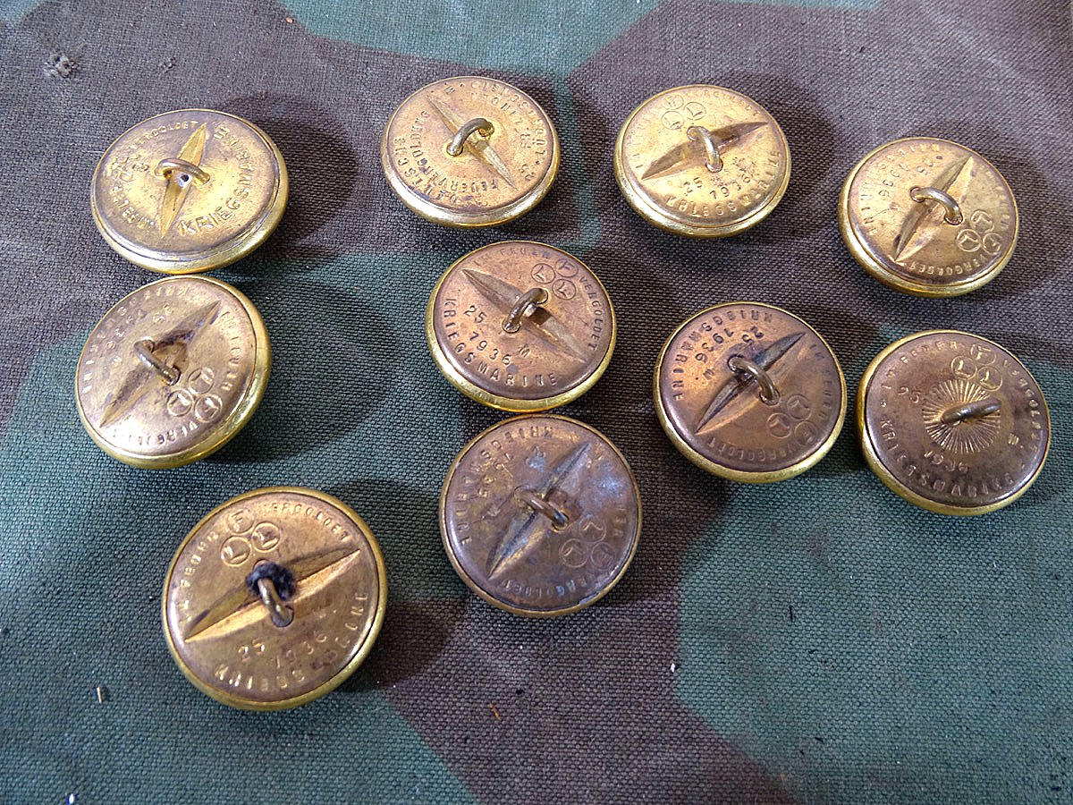 10 vergoldete 25mm Ankerknöpfe der Kriegsmarine, alle von FLL, Friedr. Linden Lüdenscheid