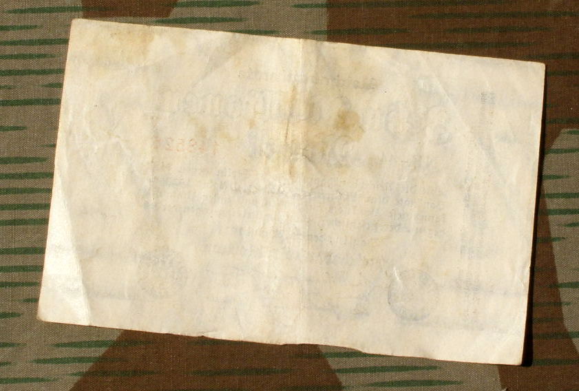 Typisches Zahlungsmittel aus dem Alltagsleben der Soldaten und Menschen der Weimarer Republik. Ideal zum Bestücken einer alten Soldaten-Geldbörse. Gebraucht. Das Foto steht stellvertretend für unseren Bestand an gleichwertigen Artikeln gleichen Zustands. Mehrere bei Bestellung vorrätig. Es kann daher bei Lieferung zu Abweichungen zum Foto kommen.Preis bezieht sich auf ein Stück, einen Schein