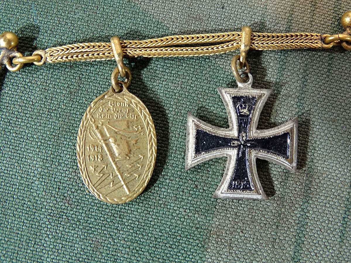 Product information "2er Frackkettchen mit folgenden Miniaturen Eisernes Kreuz 2 Klasse 1914 und Kyfhäuser Medaille. "