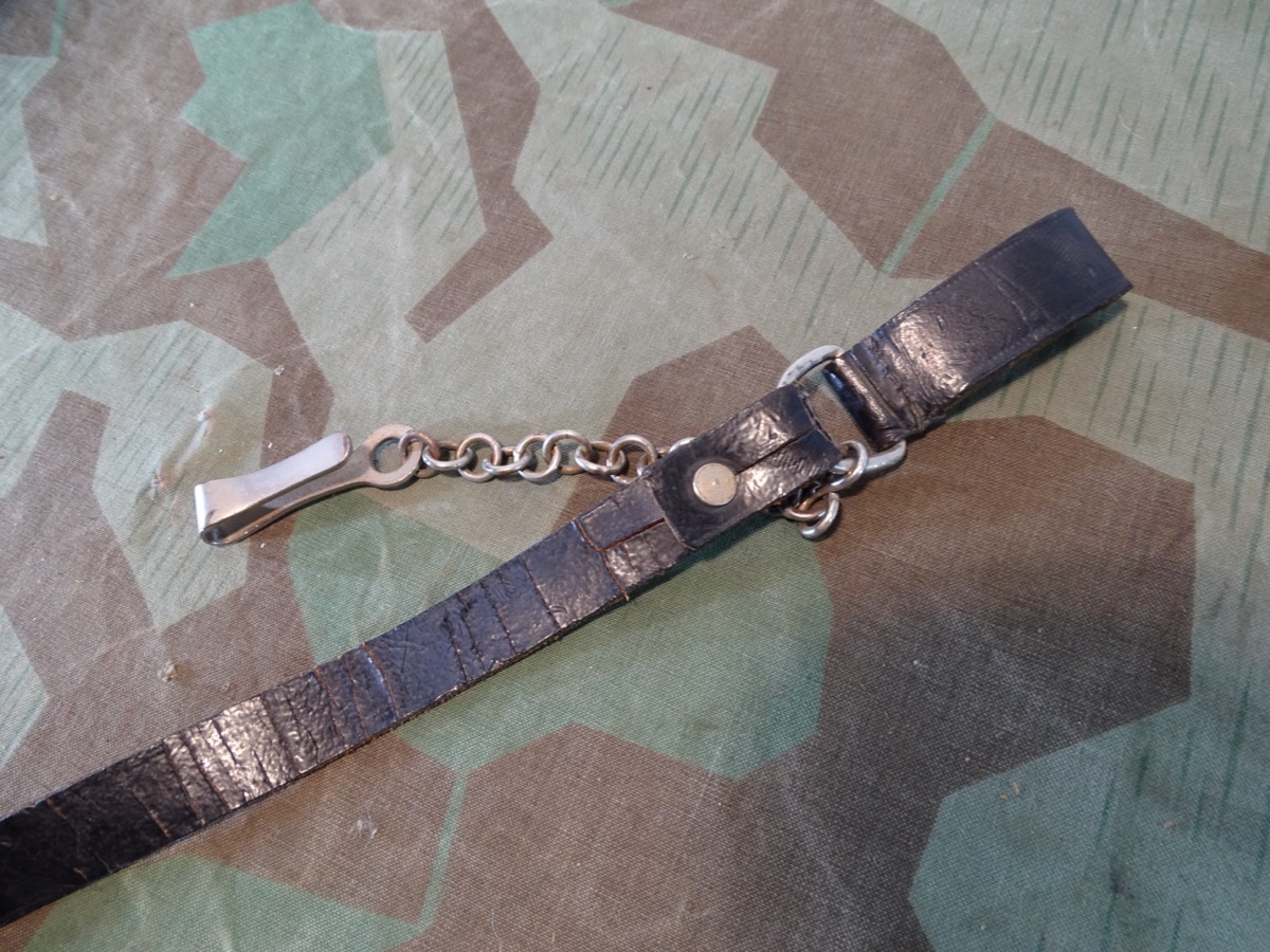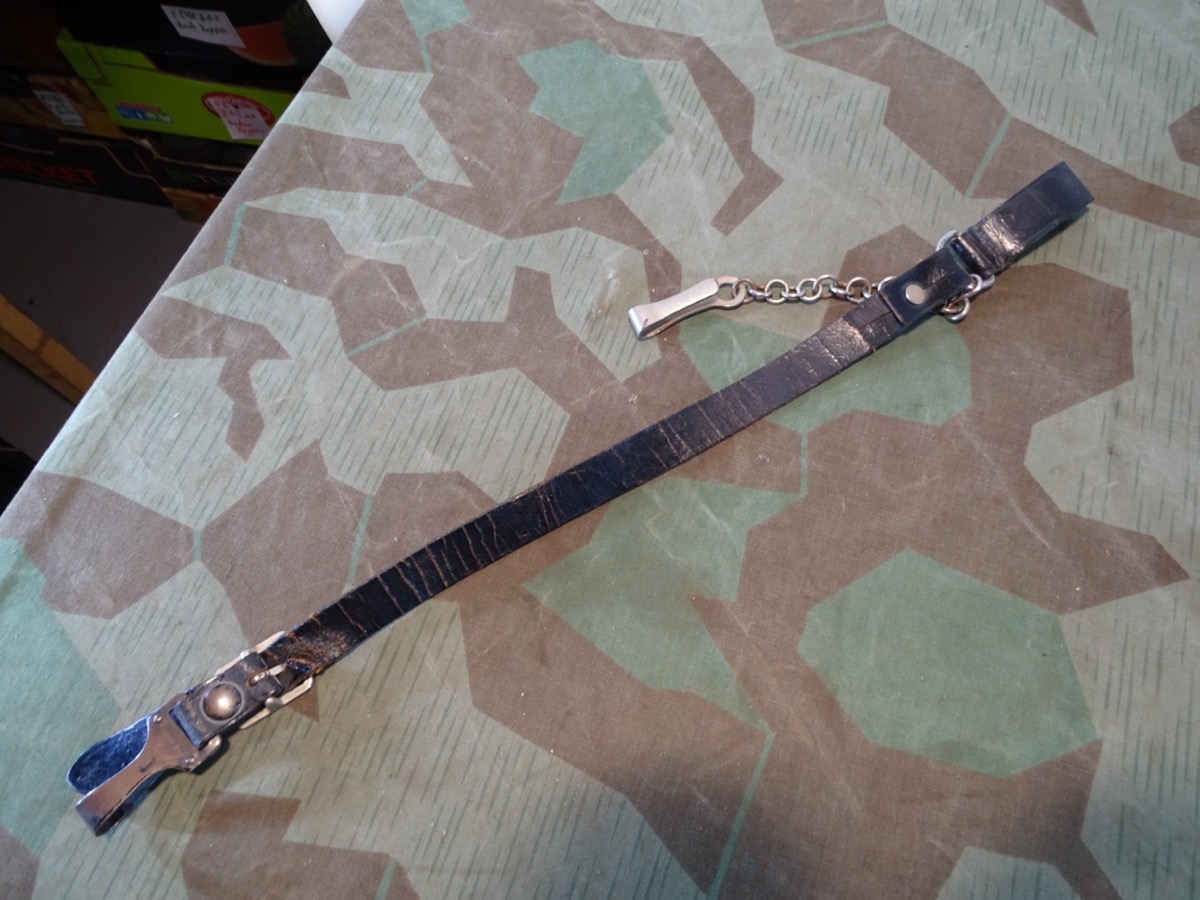 Schwarze Leder Standartausführung für Unterschnallriemen-. Getragen von allen militärischen und politischen Führern die eine Säbel Trageberechtigung hatten. Wehrmacht, Reichswehr, Offiziere Kaiserreich, Polizei, Feuerwehr.... Mit Verstellschieber und Karabinerhaken sowie Haken für kurze Geradetragung .