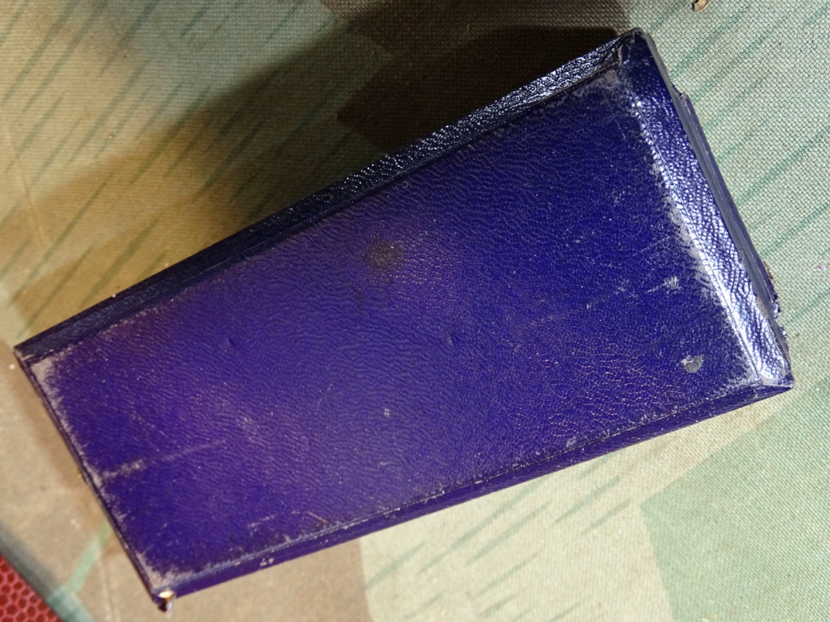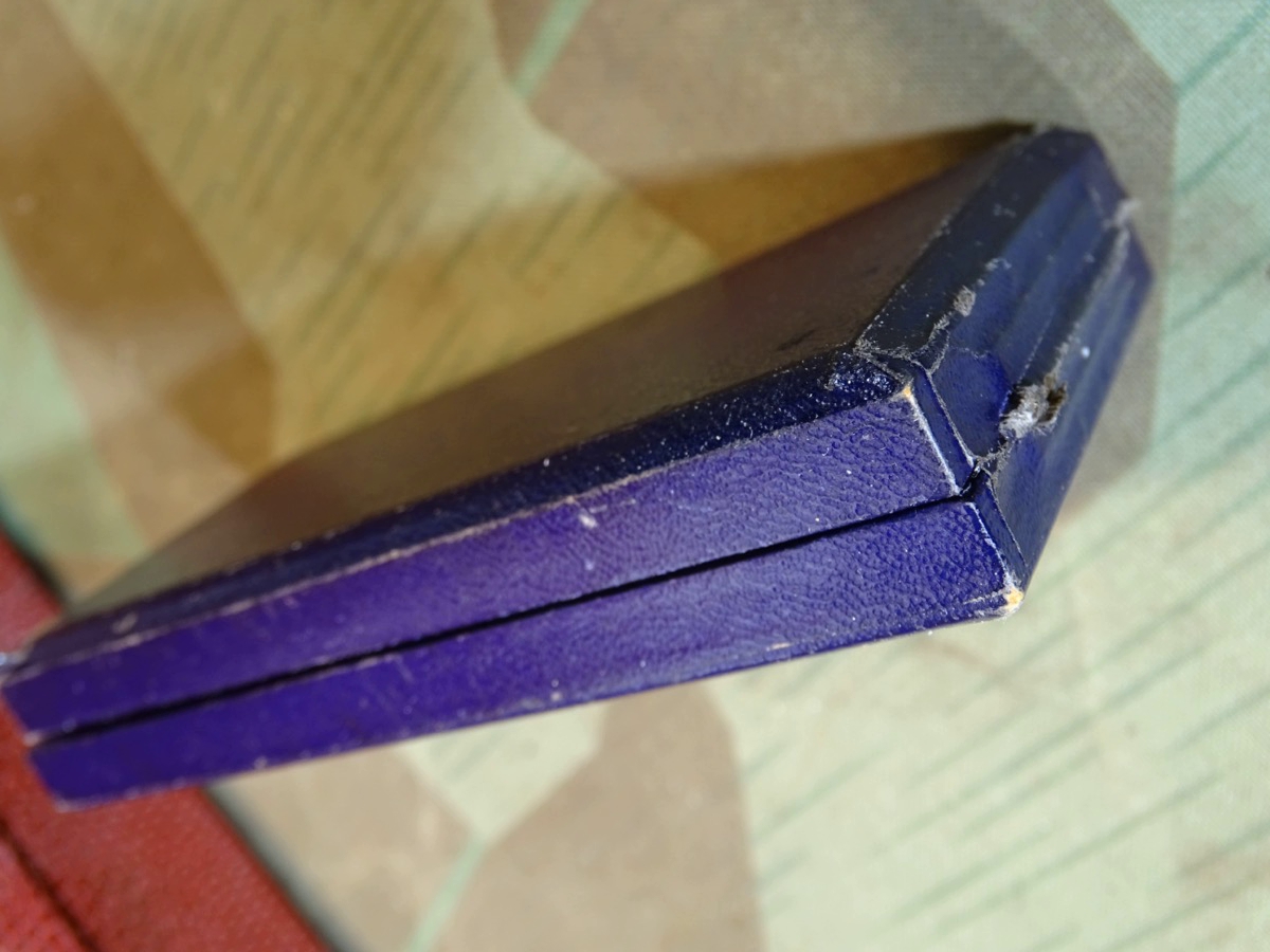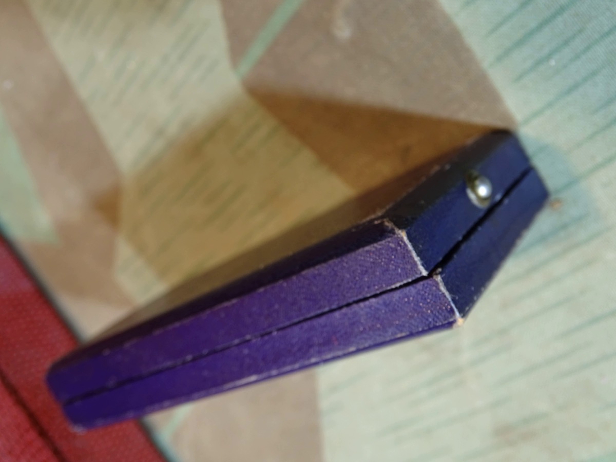 Ehrenkreuz der Deutschen Mutter in Gold am Band, komplett im Verleihungsetui. Hersteller Stemplung in weißem Kunstseidenfutter des Kistendeckels: " Richard Sieper & Söhne Lüdenscheid." Goldener Aufdruch eines Mutterkreuzes auf Schatullendeckel schön erhalten. Etui sehr gute Erhaltung. Band volle Länge. Emaille und Vergoldung intakt.