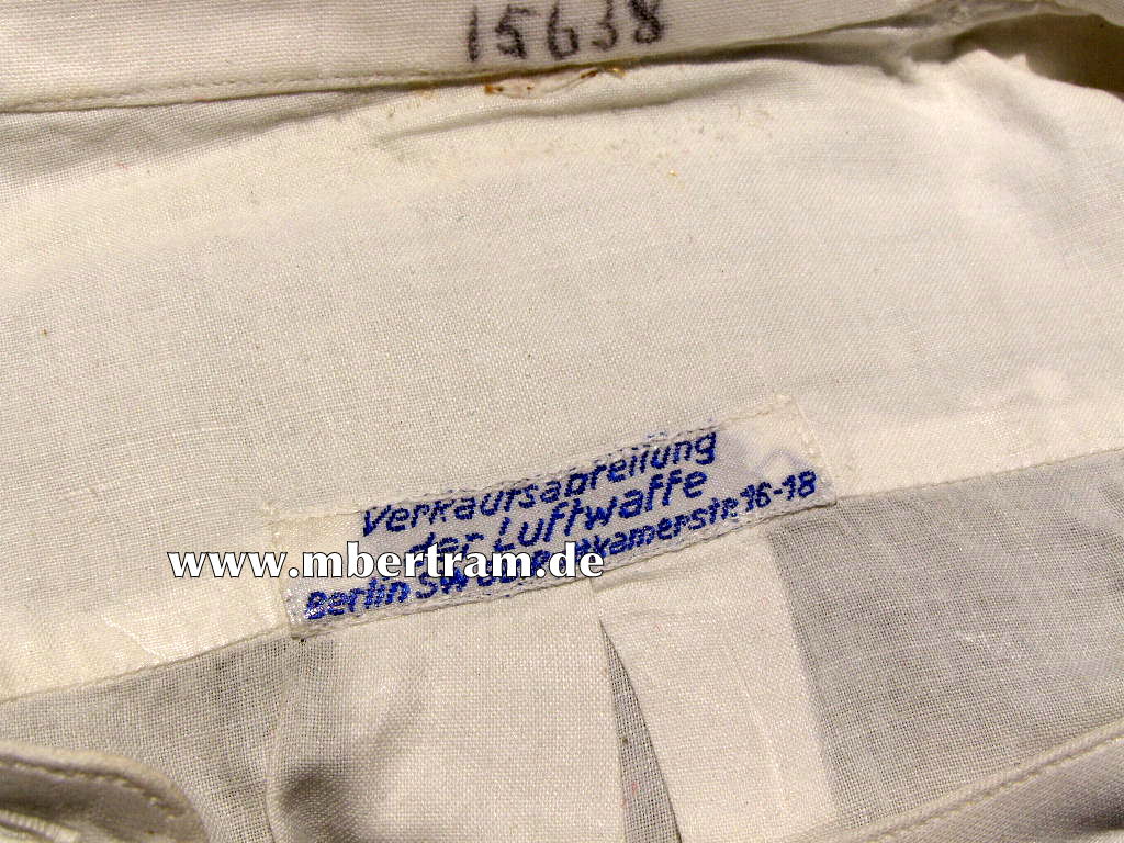 neuwertig, ungetragen, noch mit Verkaufsfaltung, in Kragen mit sehr schönem Etikett: " Verkaufsabteilung der Luftwaffe Berlin" Im Kragen steht eine 37 ( ist der Kragenumfang)