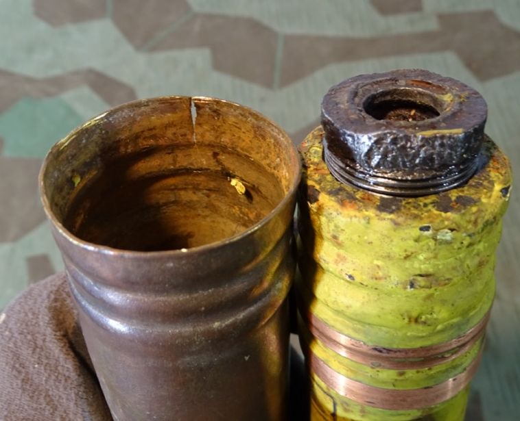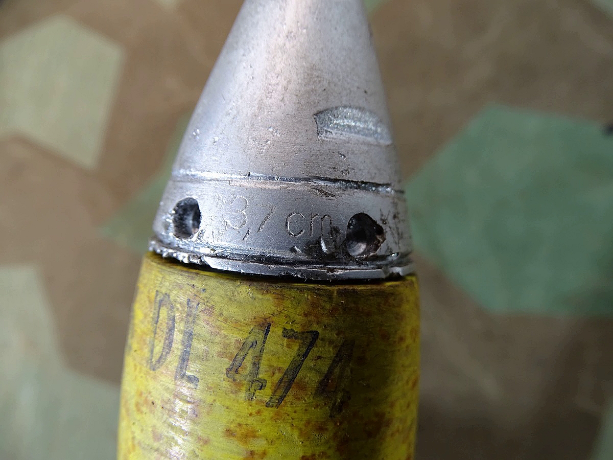 Frühe 3,7 cm Flak Deko Spreng Patrone, Messinghülse, Leuchtspurhülse, Aluzünder