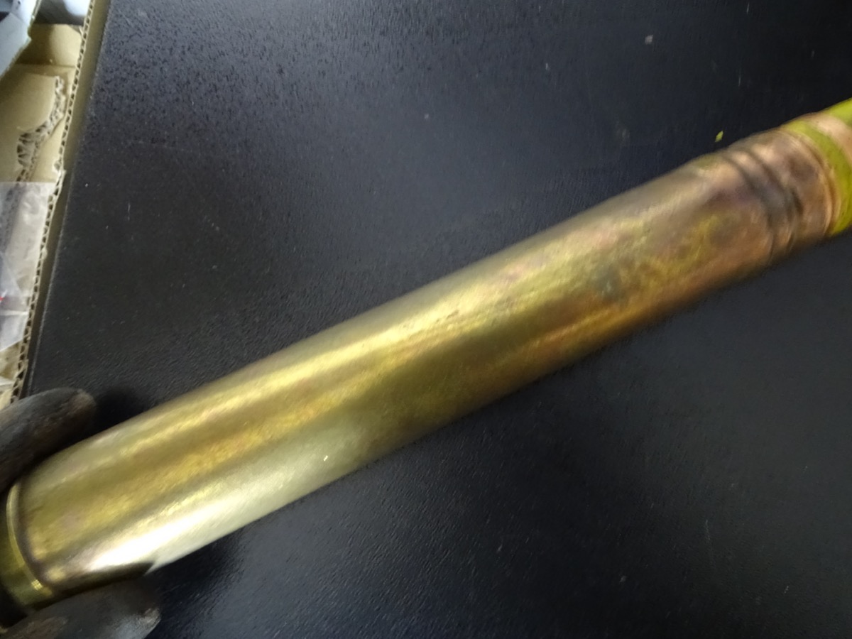 No shipping to foreign countries, Kein Versand ins Ausland. Gut erhaltene frühe Messinghülse Hülse, angelaufen, oberer Rand etwas geweitet von Deaktivierung und mit einem kleinen Spannungsriss. Hülse seitlich etwas eingedrückt, kaum merklich da es sich über eine Seite vereteilt. Bodenstempel noch sehr gut leserlich erhalten. Hersteller P 345, Jahreszahl 1938 , 3,7 cm Flak 18, WaA mit HK Nr. 73 oder 13. Auch die Zündschraube ist noch erhalten. Abgeschlagen- wie es sein muss.
