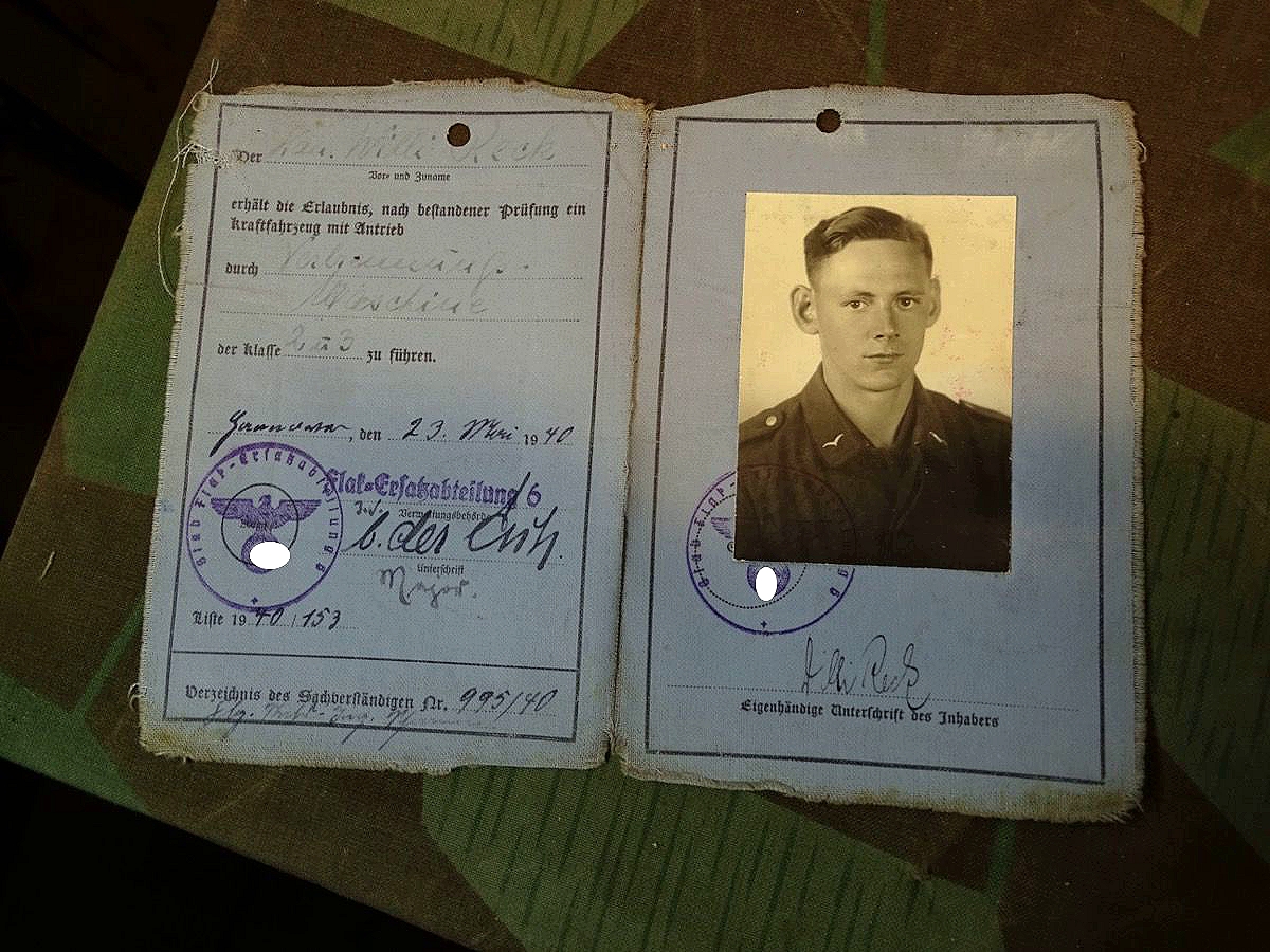 Luftwaffen Führerschein Kannonier Willi R.. aus Wpt.,3 Batterie Flak.ers. Abt. 6 Hannover, Kl.1+2+3,