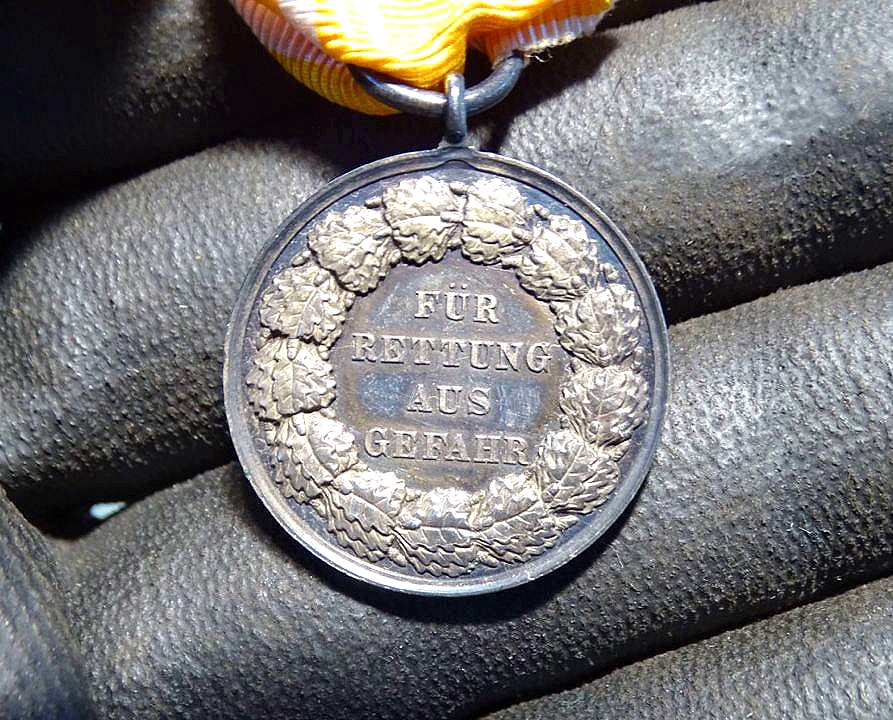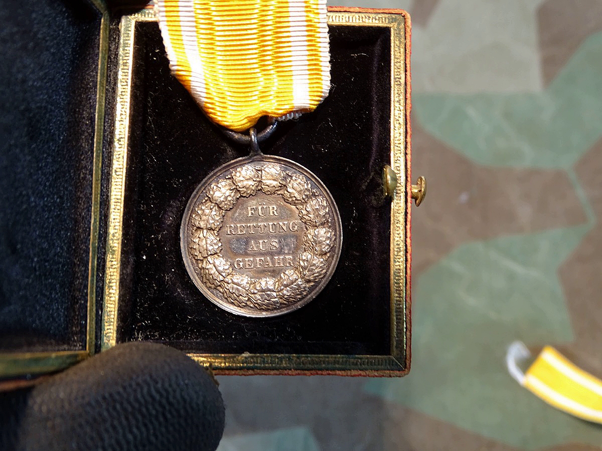 Sehr selten mit Etui zu finden und in so schönem Zustand . Bei unserer Recherche haben wir kein weiteres Stück mit Etui im Handel gefunden. Preußen, Medaille für Rettung aus Gefahr 1885-1907 (König Friedrich Wilhelm III.) Gleichmässig patiniert, unberührt-ungereinigt und so direkt aus Trägermnachlass von der Familie angekauft.