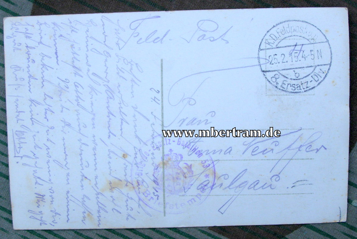 Feldpost, gelaufen ,1915, Kgl. Würtemberg. 1. Kp. Brigade Ers. Btl. 53, 8 Ers. Div. Metz