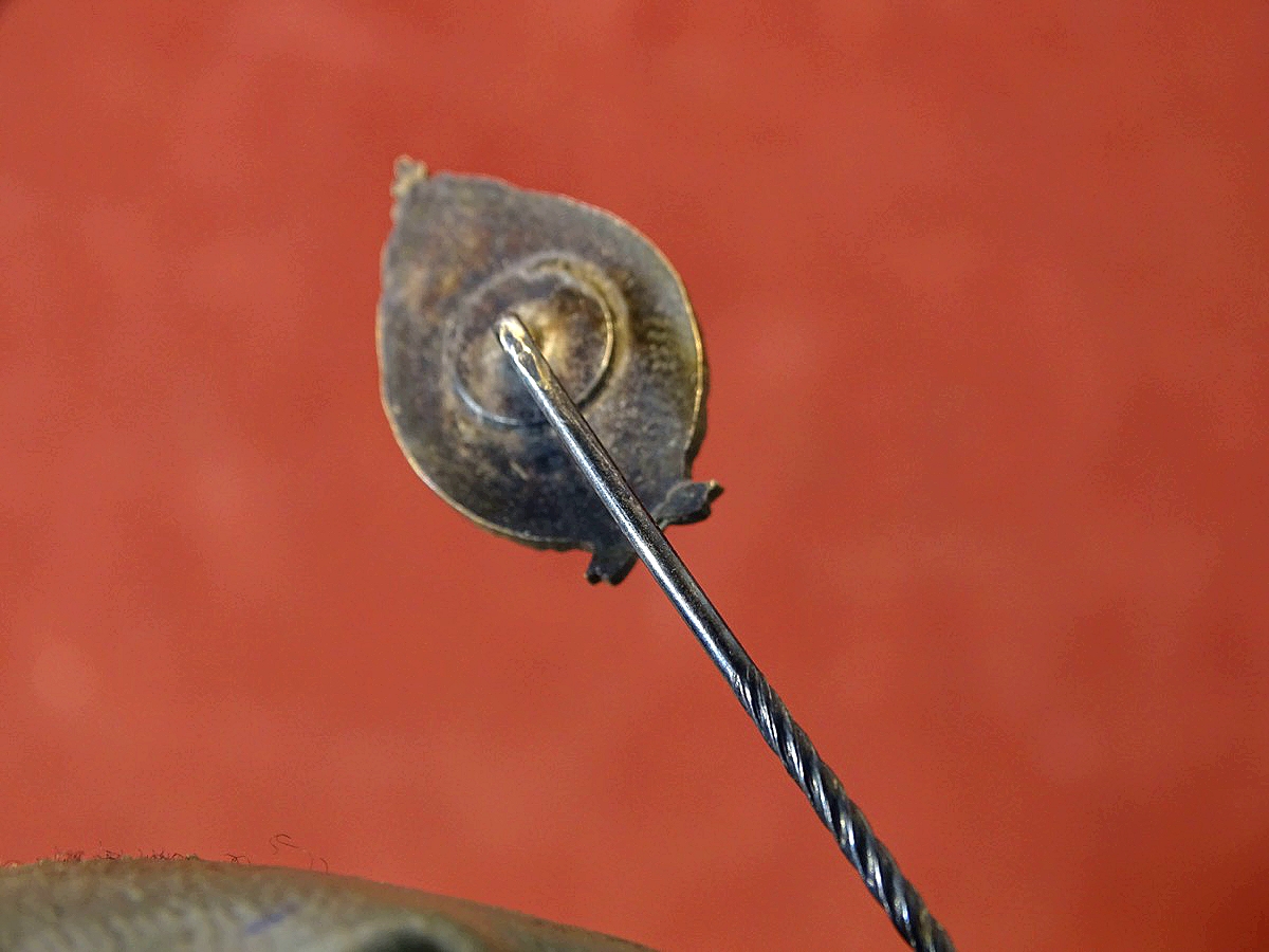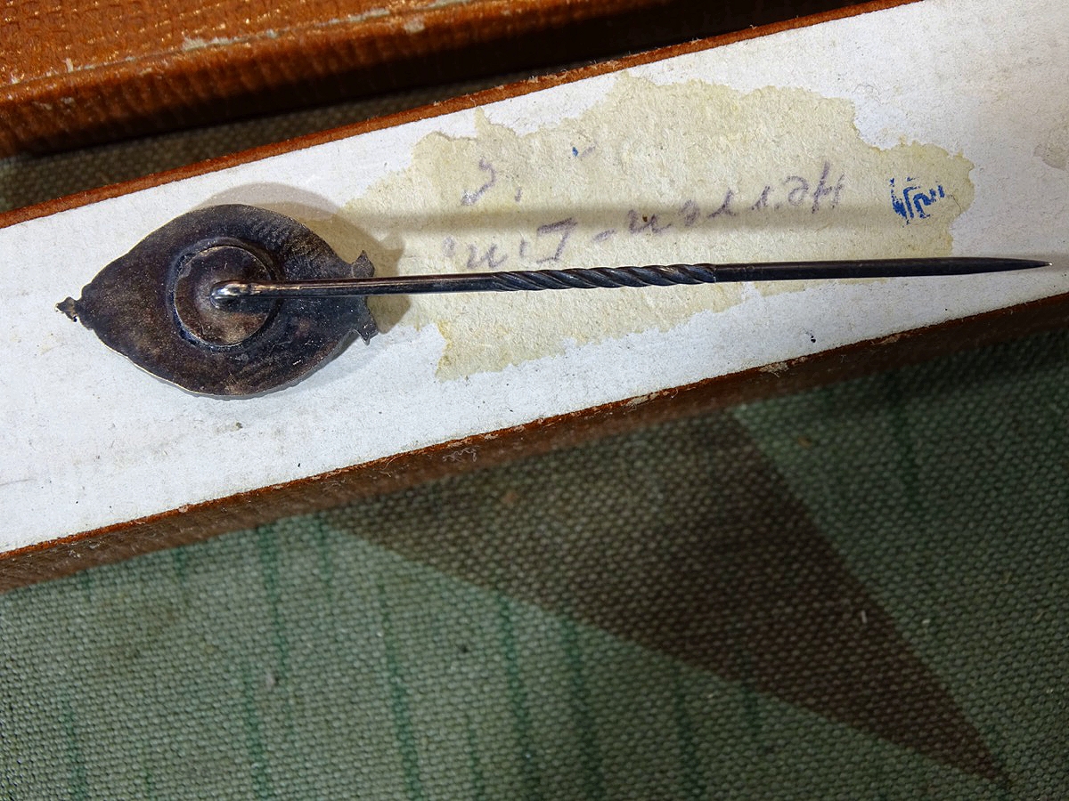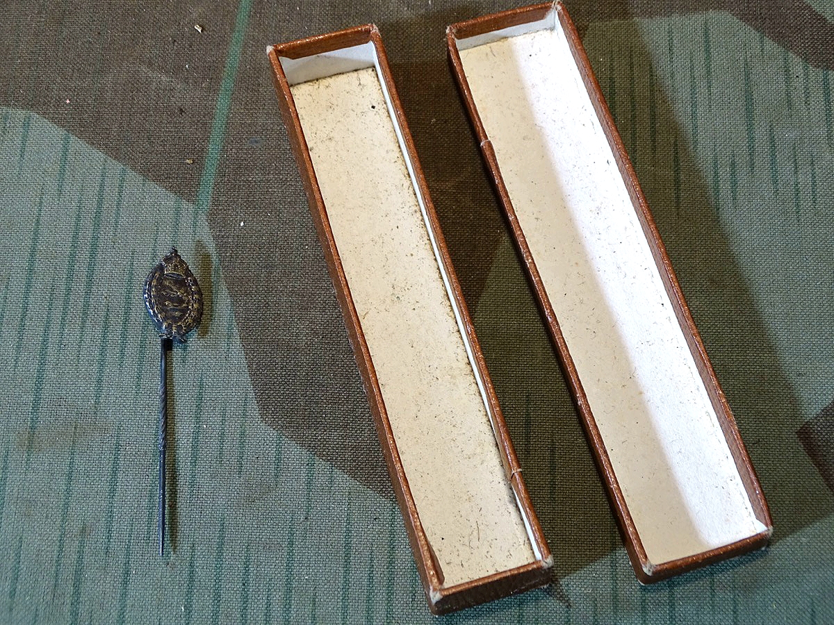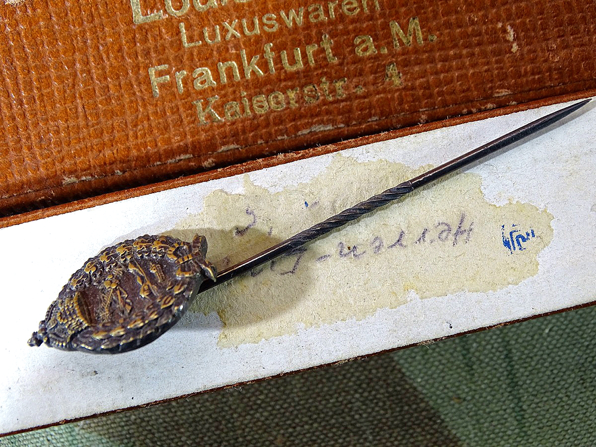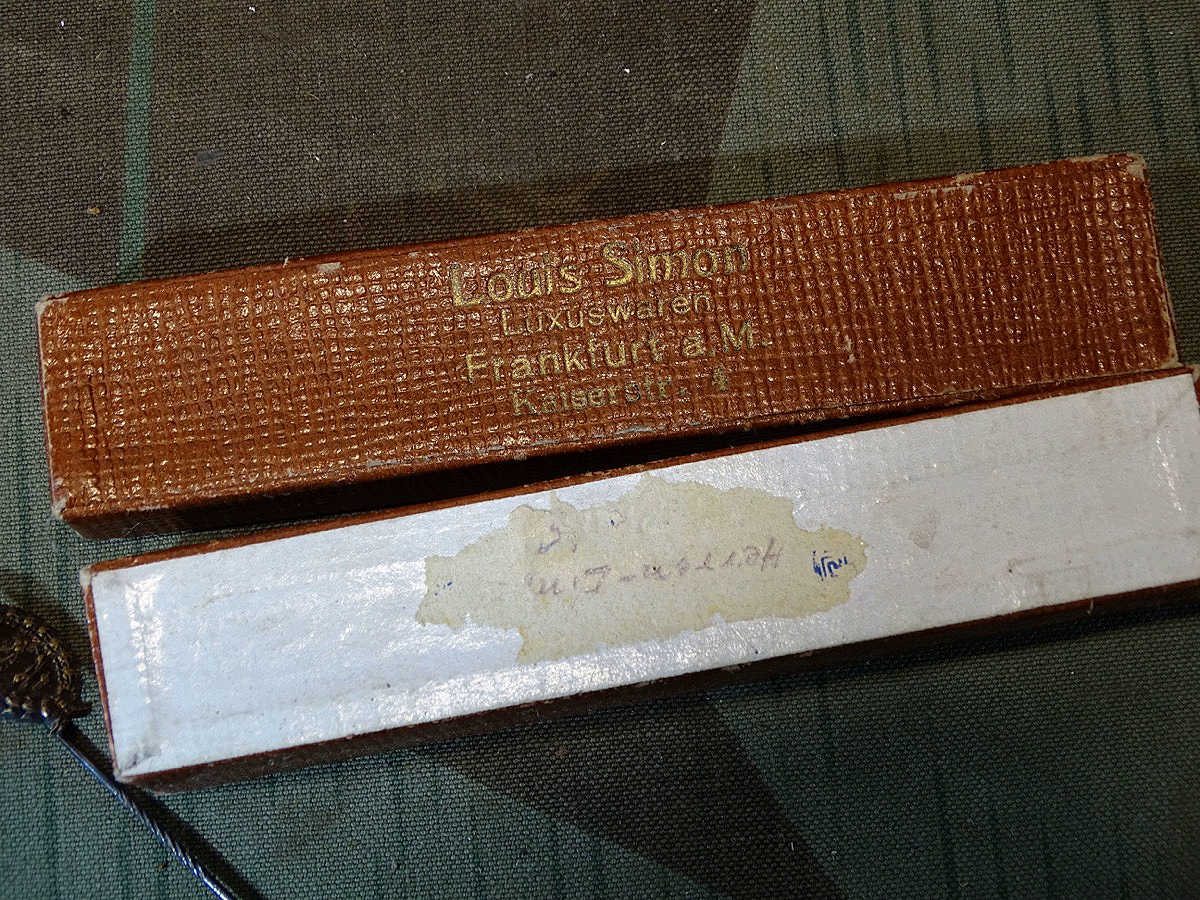 Getragenes Original, Versilberung an den erhöhten Kanten berieben. Zustand siehe Fotos. Mit altem Papp Etui des Trägers.