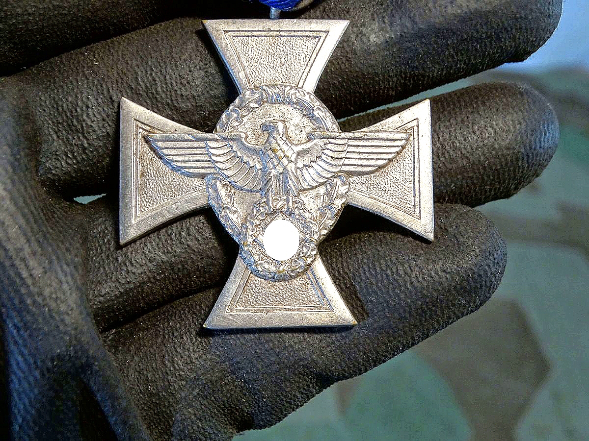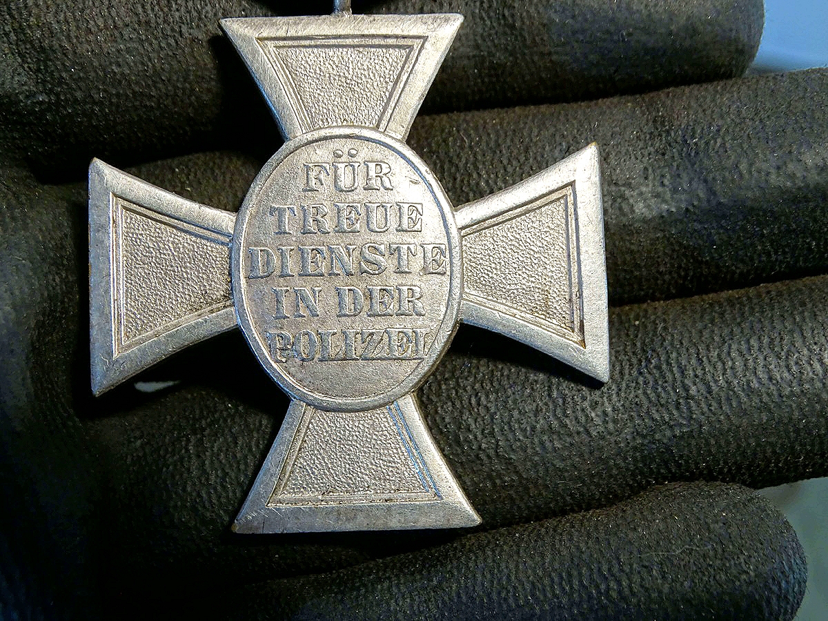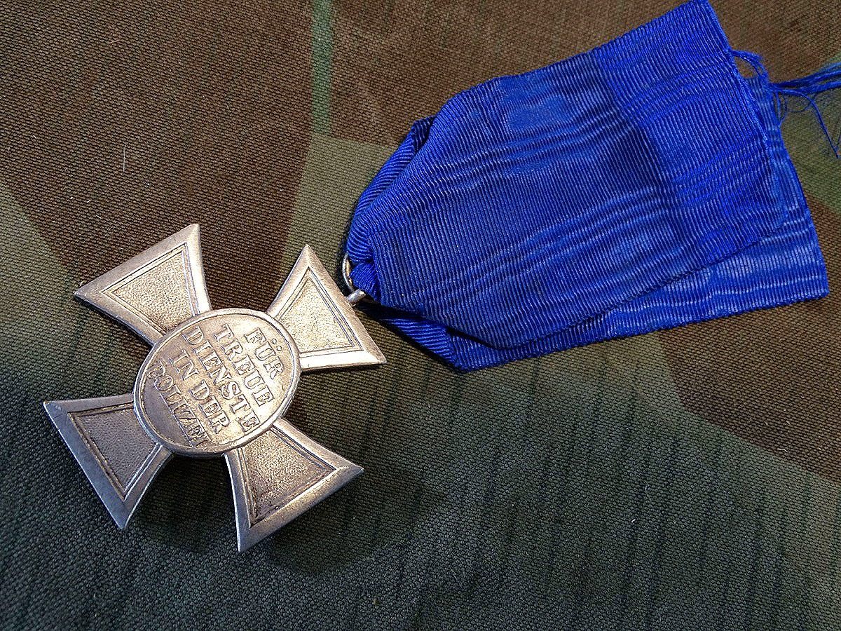 Polizei Dienstauszeichnung 2. Stufe für 18 Jahre, Buntmetall, versilbert. Am blauen Dienstzeitband