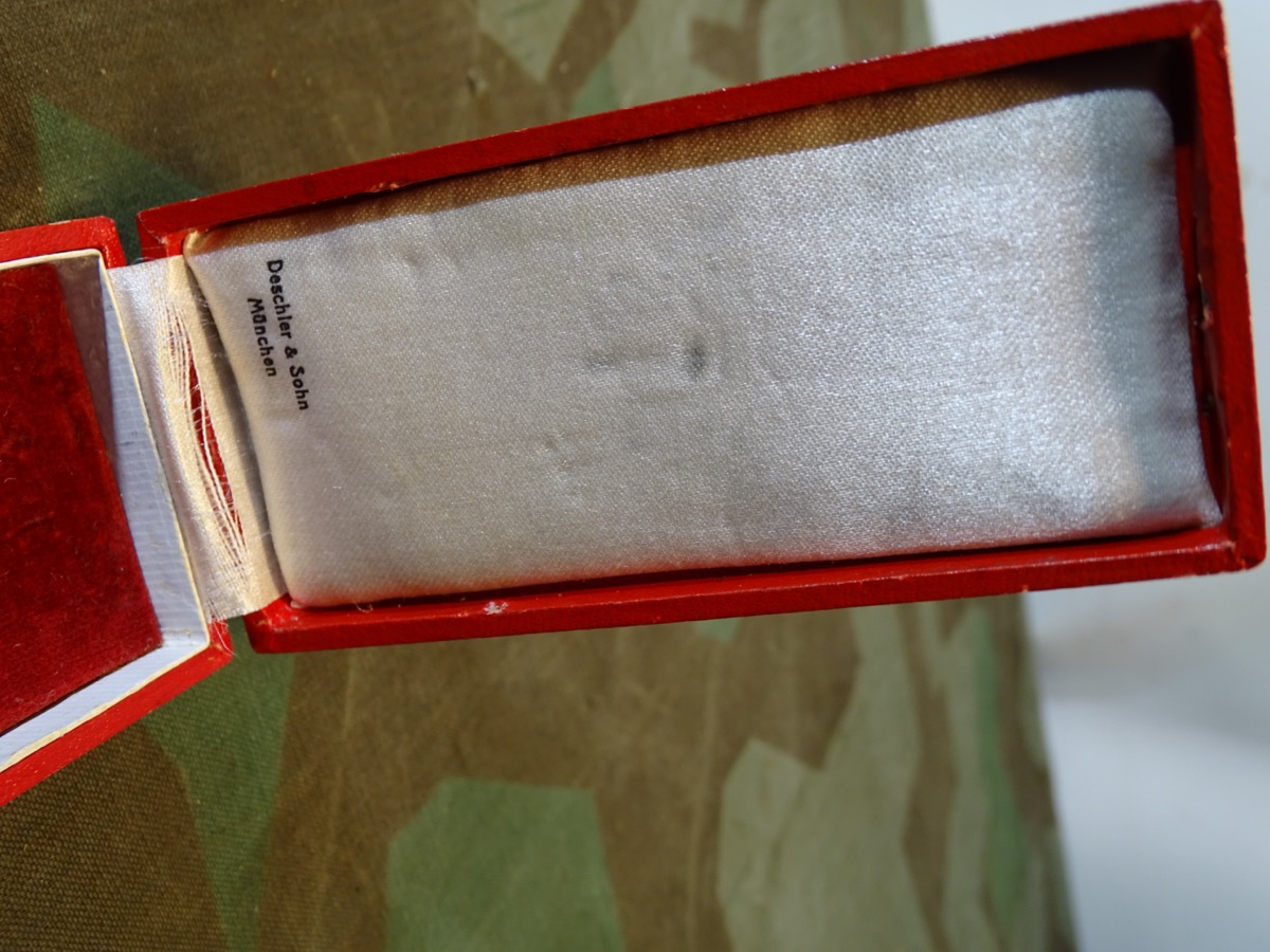 Etui mit Herstellermarke von Deschler München. Band mit Tragespange. Polierte Kanten. HK Emaille ohne Fehlstellen.