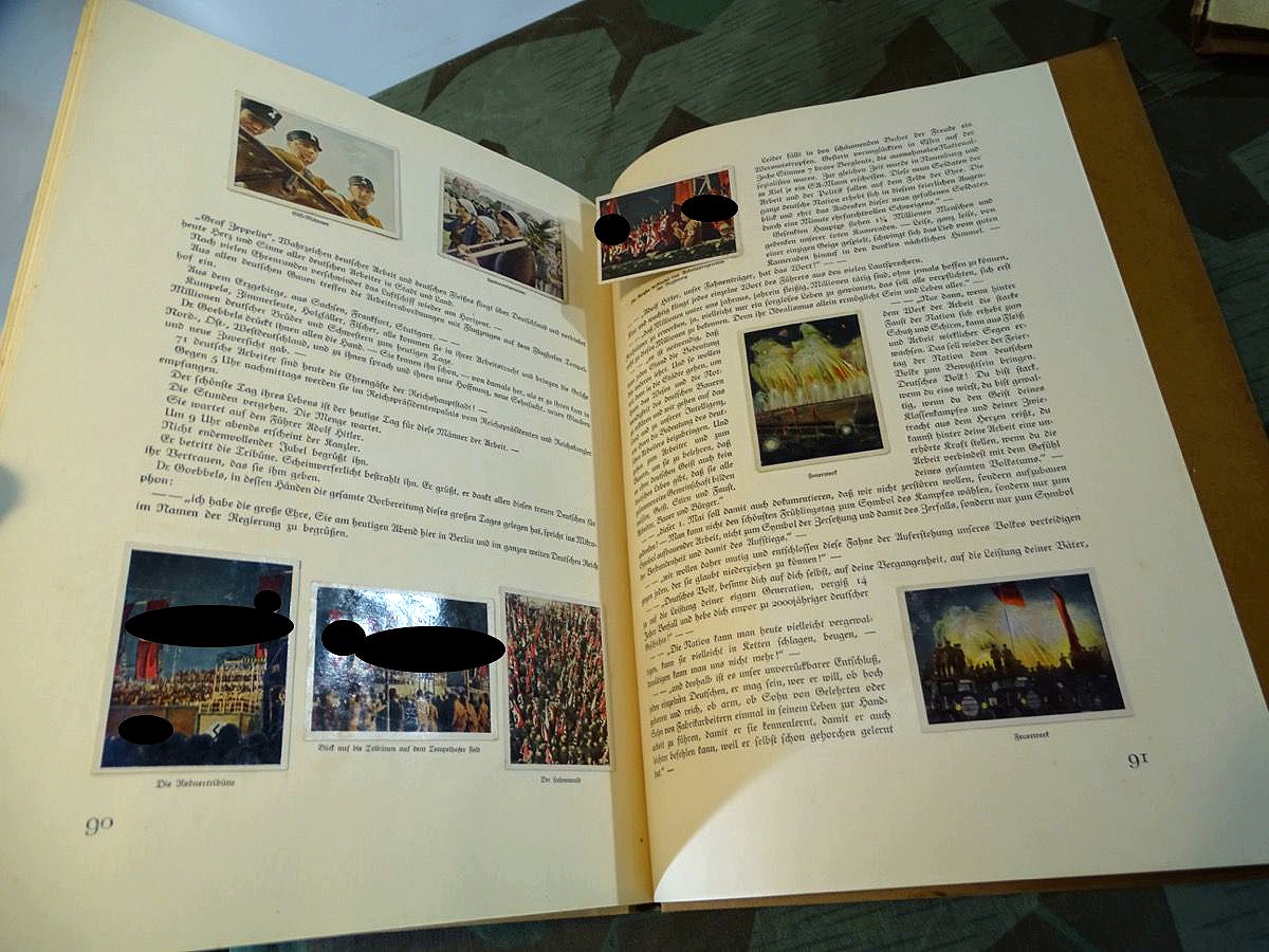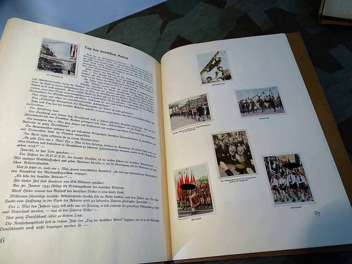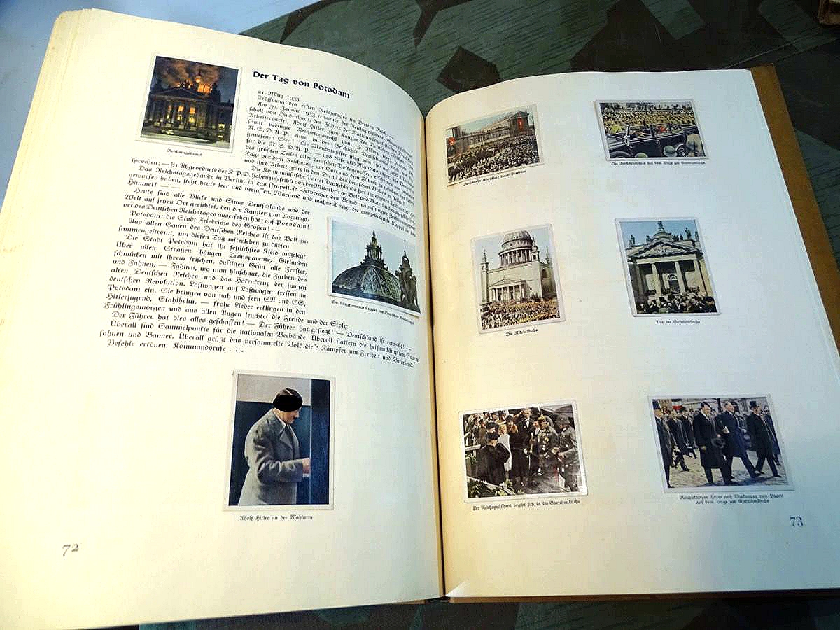Sammelbilder-Album / Zigarettenbilderalbum. Komplett mit 273 Sammelbildern und Bildnis. Seltene, frühe Röhm-Ausgabe – Bilder auf Seiten 25, 27 und 56. Sauberes, gut erhaltenes Exemplar, alle Bilder vorhanden. 3 Bilder lose aber auf passender Seite beiliegend. Zigarettenbilder Album / Sammelbilder Album. Heinrich Hoffmann - Leopold von Schenkendorf, Cigaretten Bilderdienst Altona - Bahrenfeld (Hrsg.): Eine historische Bilderfolge. Format/Einband , ca 24x-33 cm. Bemerkungen: Reichsbildberichterstatter der NSDAP Heinrich Hoffmann übernahm Auswahl & künstlerische Durcharbeitung d. Lichtbilder. Die textliche Gestaltung stammt a.d. Feder d. Truppführers d. SA Leopold v. Schenkendorf.